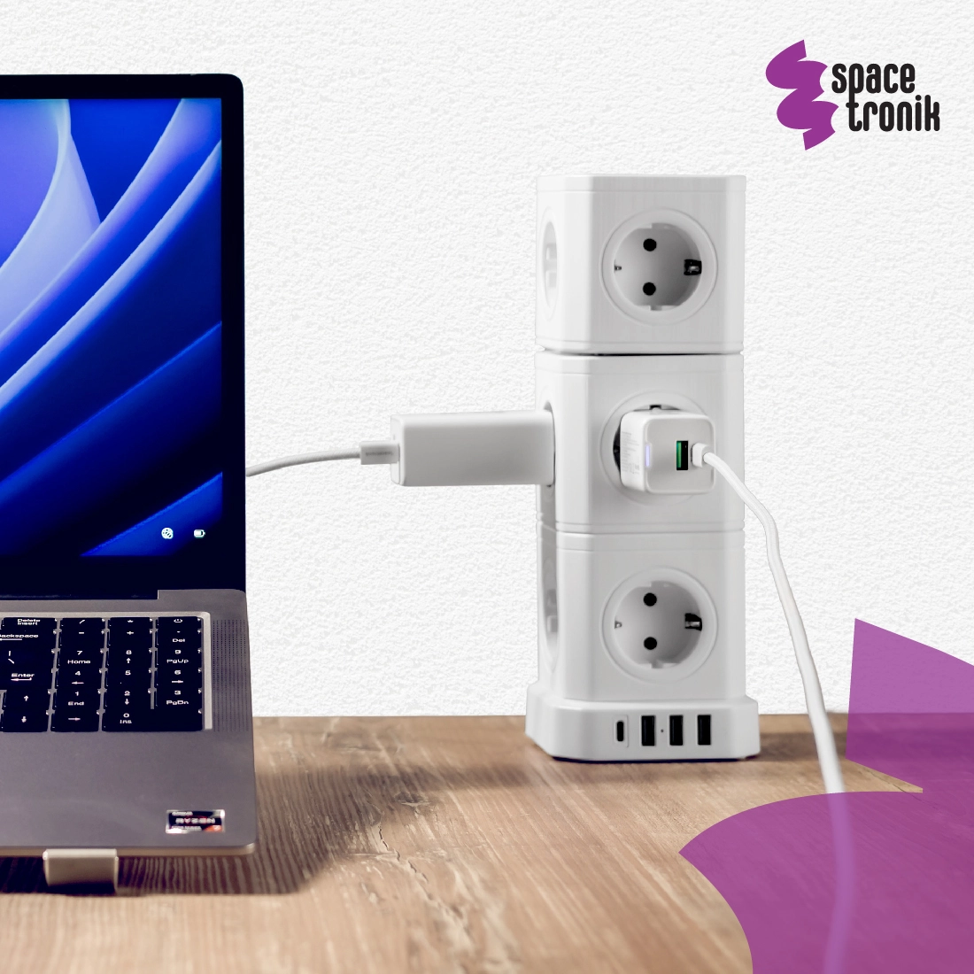 Es gibt eine große Auswahl an Steckdosenleisten auf dem Markt. Sie fragen sich also, welche Steckdosenleiste Sie wählen sollen? Achten Sie am besten auf die Anzahl der Steckdosen, mit denen sie ausgestattet ist. In der Spacetronik SPSC02 finden Sie 9 Steckdosen. Das ist aber noch nicht alles. Sie können den Energiewürfel so erweitern, dass Sie unzählige Kabel an ihn anschließen können. Wie ist das möglich? Sie müssen nur den Spacetronik SPSC01-Stecker kaufen und ihn in Ihre Steckdosenleiste stecken. So können Sie einen Turm von einem Dutzend oder sogar Dutzenden von Ladesteckdosen bauen. Sichern Sie sich Ihren Seelenfrieden und leiden Sie nie wieder unter fehlenden Steckdosen!