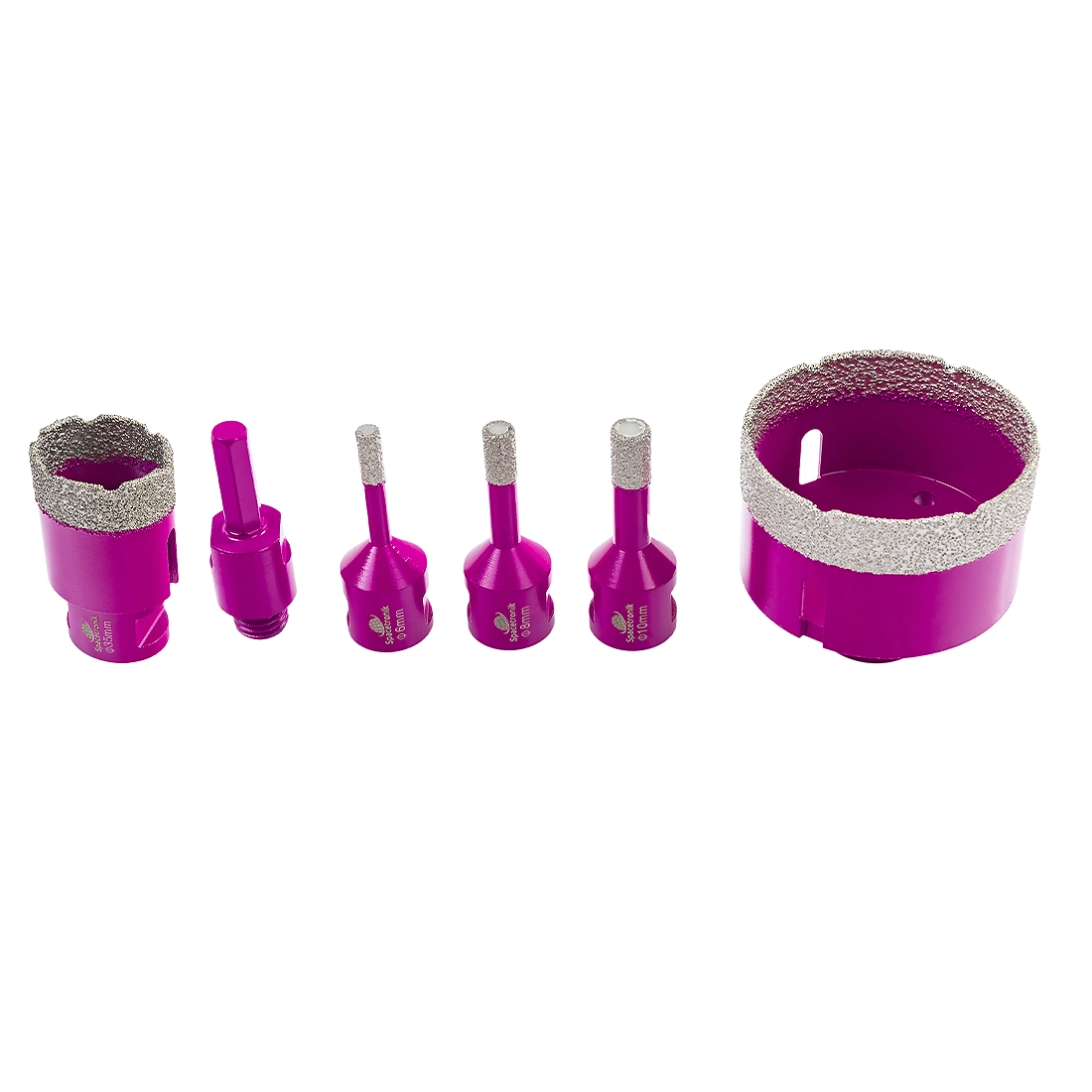 Dieses Set ist für das Bohren in folgenden Materialien geeignet: Keramikfliesen, Granit, Marmor, Stein oder Ziegel. Das bedeutet, dass es so konzipiert und ausgestattet ist, dass es das Bohren in einer Vielzahl von harten Bau- und Ausbaumaterialien effektiv ermöglicht. Mit diesem Set können Sie präzise Löcher in eine Vielzahl von Oberflächen bohren, von empfindlichen Keramik- und Porzellanfliesen über massiven Granit und Marmor bis hin zu Ziegeln. Es ist ideal für Bau- und Renovierungsprofis, aber auch für Heimwerker, die Arbeiten rund ums Haus selbst ausführen möchten. Das Set bietet nicht nur Vielseitigkeit in Bezug auf die verschiedenen Materialien, sondern garantiert auch eine hohe Bohreffizienz und Präzision, die beim Anbringen von Befestigungselementen, beim Aufhängen von Gegenständen oder beim Erstellen von Montagelöchern entscheidend ist.