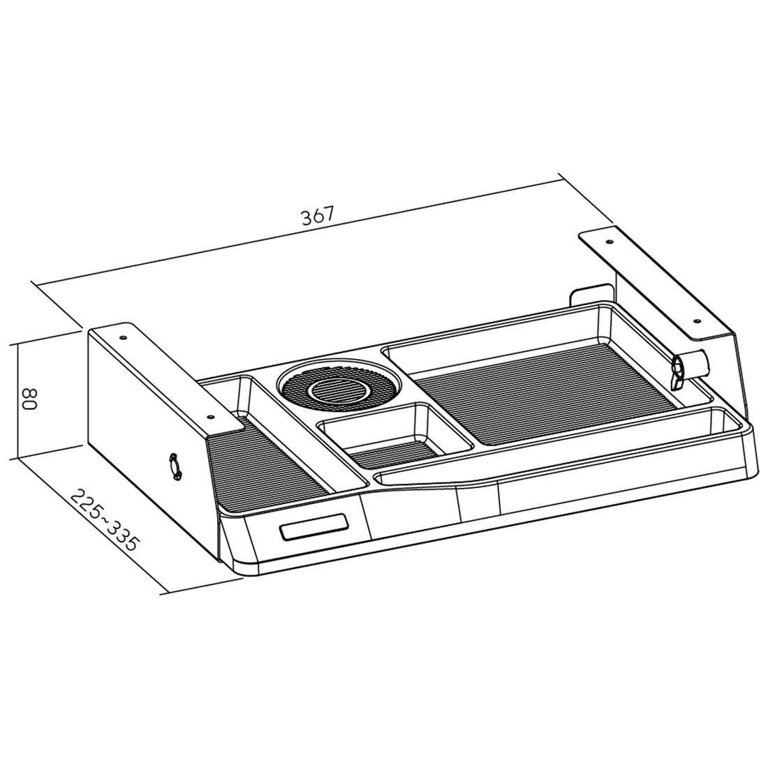 - Wymiary: 367 x 225 (335 po wysunięciu) x 80 mm