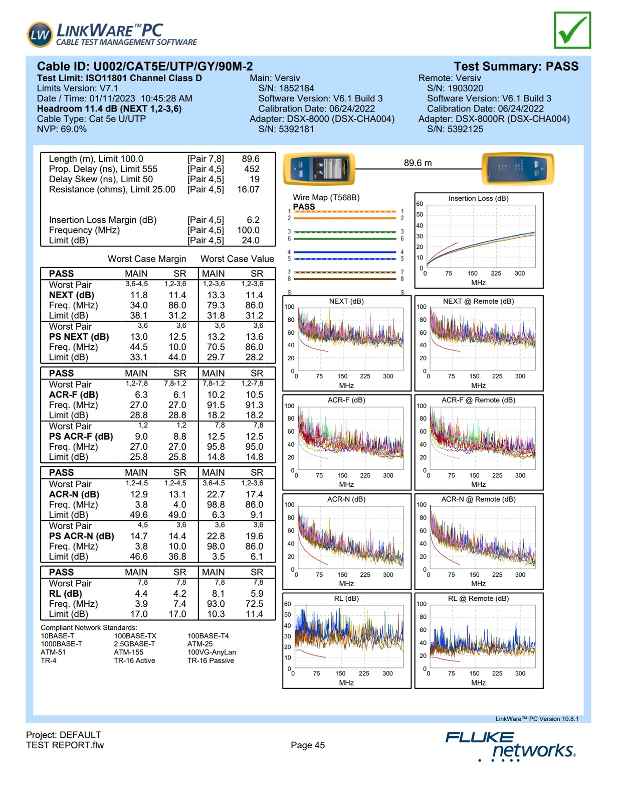 90m Fluke Kanaltest @ 90m ISO11801 Klasse D