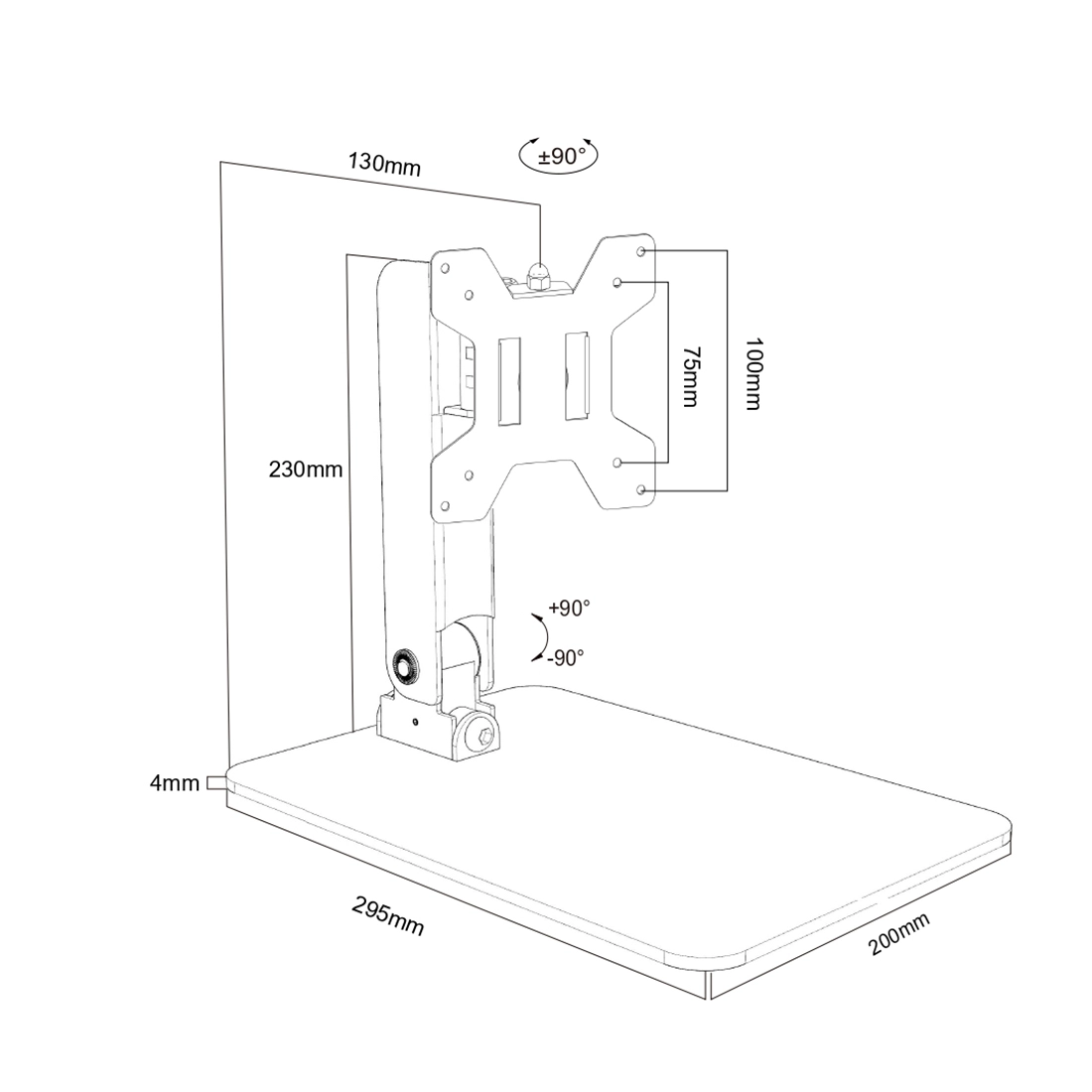 Uchwyt SPA-B111 oferuje pełen zakres regulacji – możliwość obrotu ekranu o 180° (w lewą i prawą stronę), nachylenia oraz rotacji. Dzięki temu monitor można łatwo dostosować do preferencji użytkownika, niezależnie od zastosowania. Obrót, pochylenie i rotacja zapewniają optymalny kąt widzenia w każdej sytuacji.