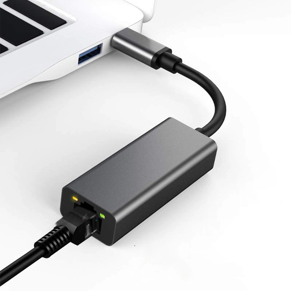 Tragbarer USB-C-zu-RJ45-Adapter mit einem leichten und eleganten Aluminiumgehäuse, das auch bei Dauerbetrieb nicht überhitzt. Der Adapter bietet höhere Geschwindigkeiten und bessere Sicherheit als drahtlose Verbindungen. Indem er Ihren Computer mit einer Hochgeschwindigkeitsverbindung über USB-C 3.1 versorgt, müssen Sie sich keine Sorgen mehr über instabile Verbindungen auf Ihrem Gerät machen.