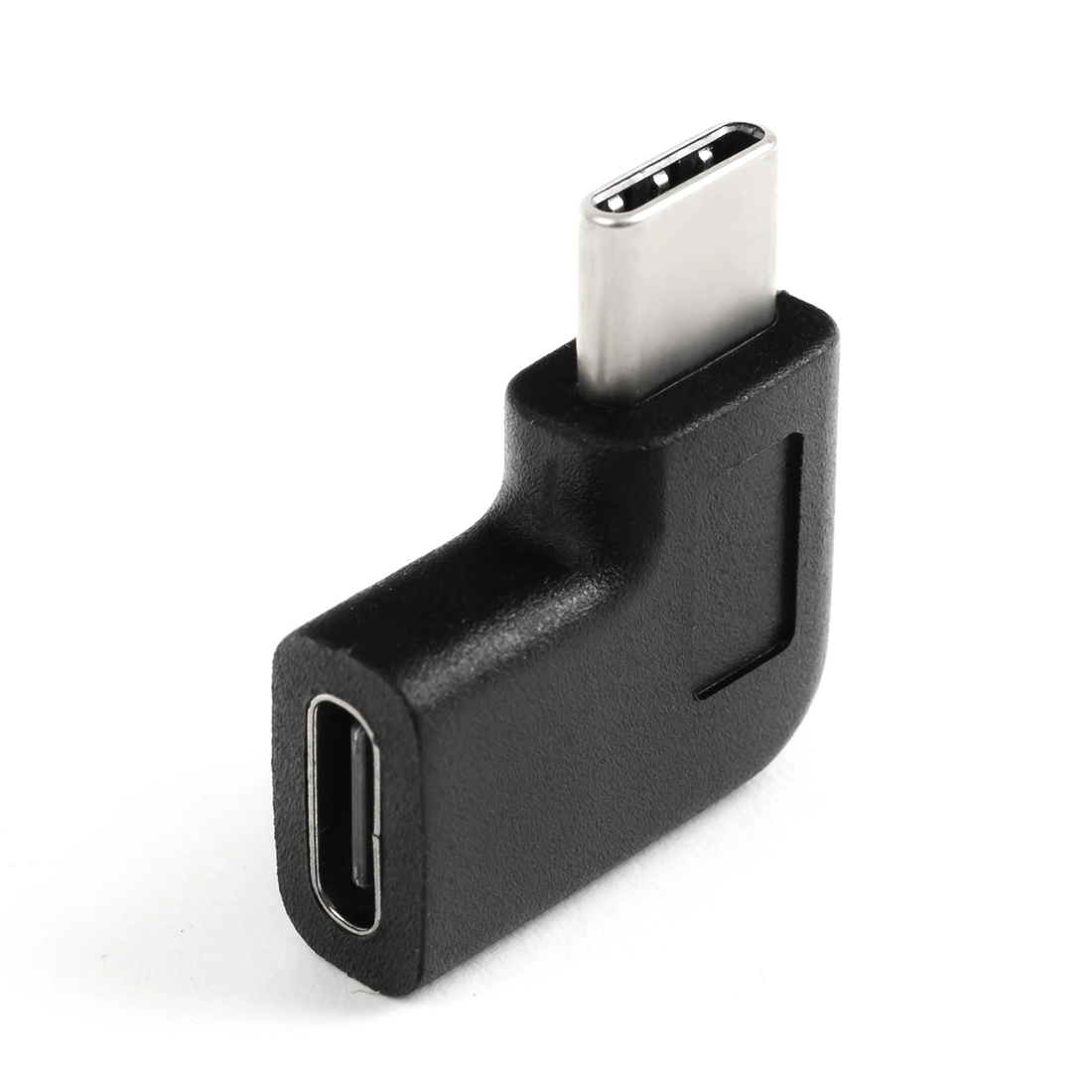Tragbarer 90-Grad-USB3.1-USB-C-Winkeladapter. Ermöglicht den Anschluss von Kabeln oder Geräten in einem Winkel, an schwer zugänglichen Stellen. Der USB-C-Anschluss ist symmetrisch, so dass der Anschluss entweder als linker oder rechter Anschluss verwendet werden kann.