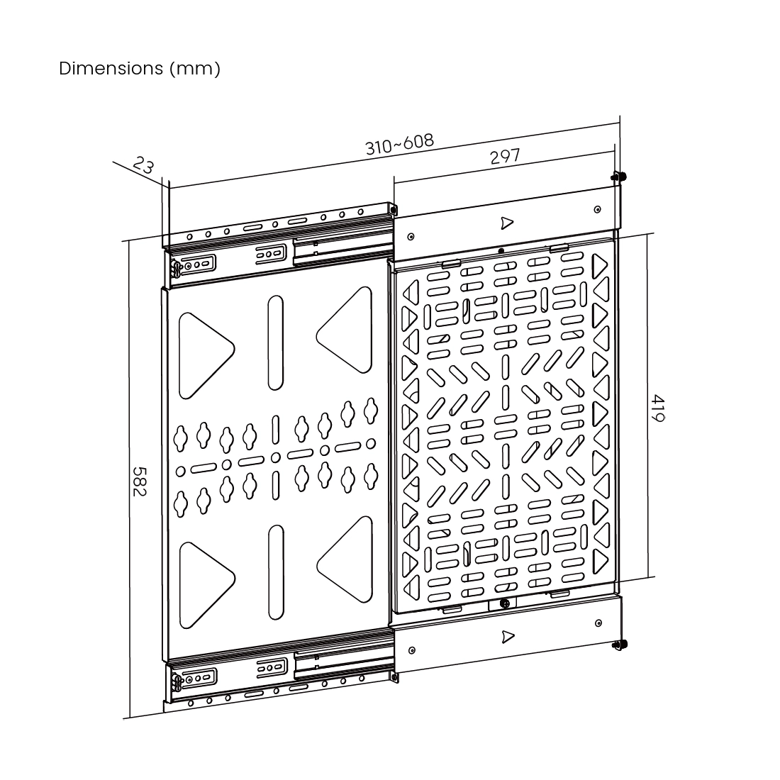 - Abmessungen: 608x23x582mm (23.9 "x0.91 "x22.9")