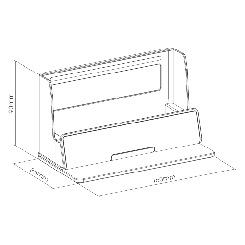Der Ständer wurde so konzipiert, dass Sie den Bildschirm Ihres Telefons oder Tablets bequem abstellen oder betrachten können. Sie können auch Ihre Tastatur oder einen dünnen Laptop darauf abstellen. Sie können ihn einfach auf einen Schreibtisch, ein Regal oder einen anderen geeigneten Ort stellen. Zur Abwechslung können Sie Dinge auf diesem Ständer auch vertikal aufbewahren, um weniger Platz zu beanspruchen.