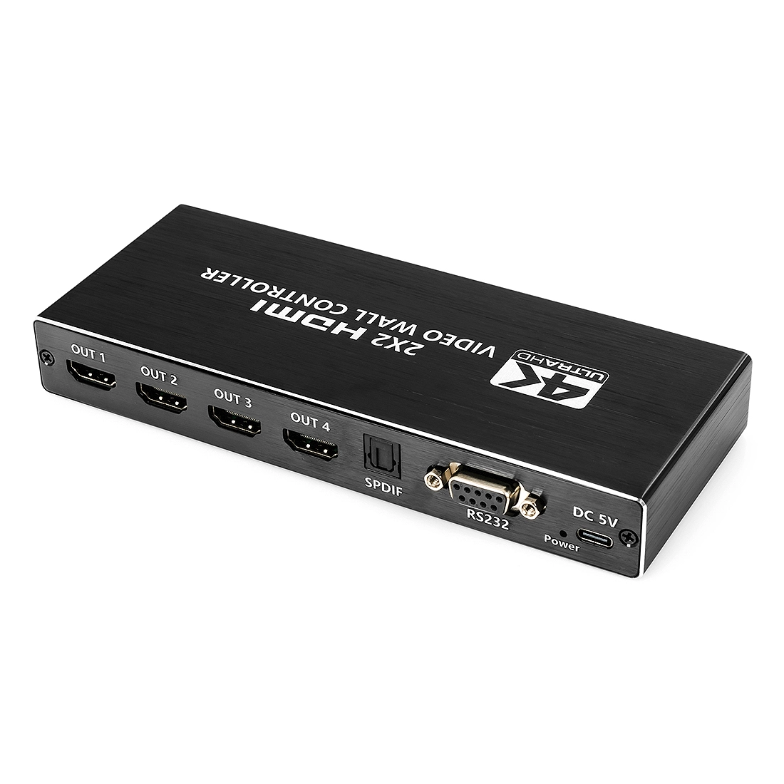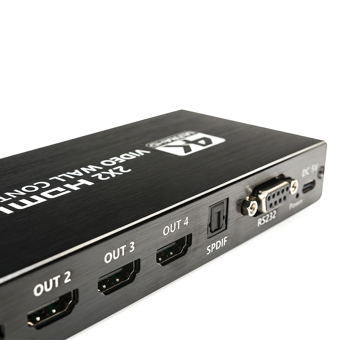 Ein 2x2-Wand-Controller, der die Übertragung von Video über einen HDMI- oder DVI-Anschluss und die Anzeige auf HDMI-Empfängern in verschiedenen Konfigurationen ermöglicht. Sie können damit ein großes und dynamisches Bild erzeugen, indem Sie eine Wand aus 4 Empfängern erstellen. Das Gerät unterstützt Kabel mit einer Länge von bis zu 5 m und einer Auflösung von 4K@30Hz.