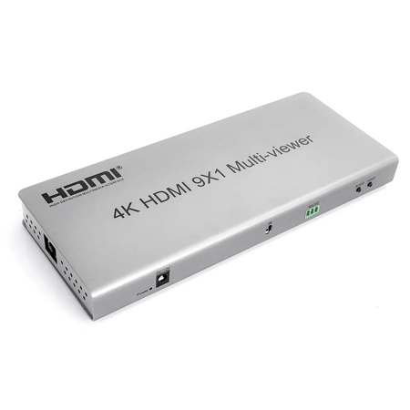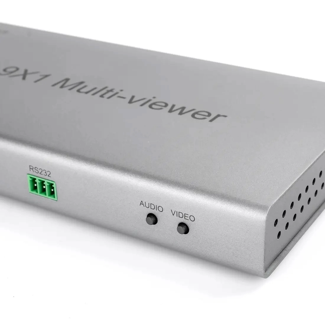 Der 4K HDMI 9x1 Multi-Viewer ist ein Hochleistungsgerät mit neun HD-Bildschirmsegmenten und reibungsloser Ausgangsumschaltung. Er kann 9 digitale HD-Videosignale auf demselben Bildschirm anzeigen und verfügt über verschiedene Video-Segmentierungen, die 9 HD-Eingangssignale synchron und reibungslos umschalten. Die Steuerungsmethoden des Umschalters sind flexibel, er kann per Drucktaste und Infrarotsteuerung geschaltet werden. Es ist ein sehr praktischer und stabiler Umschalter, der einfach zu installieren ist und in großen Projekten, Konferenzräumen und anderen Orten eingesetzt werden kann