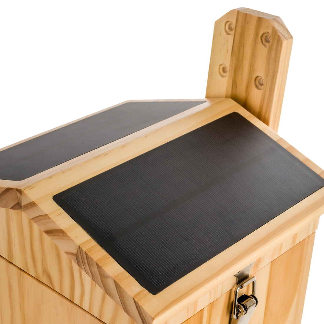 Ausgestattet mit einem Solarpanel auf dem Dach, bietet der Spacetronik SP-BF01 Nistkasten eine autarke und umweltfreundliche Energielösung. Das Solarpanel sammelt effizient Sonnenenergie, um den eingebauten 5200 mAh Lithium-Ionen-Akku zu betreiben. Diese Kombination gewährleistet einen ununterbrochenen Betrieb der Kamera, auch an weniger sonnigen Tagen, und macht ein regelmäßiges Aufladen überflüssig. Diese Energieunabhängigkeit macht den Stand ideal für den Einsatz an einer Vielzahl von Standorten, unabhängig vom Zugang zu externen Stromquellen.