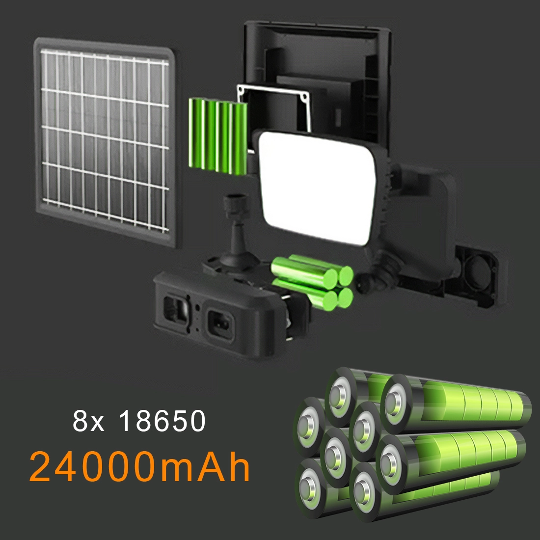 P ush-Benachrichtigungen - Sie erhalten Benachrichtigungen, wenn die Kamera eine Bewegung erkennt -LED-Lampe - sie leuchtet Ihre Einfahrt oder Haustür perfekt aus -Leistungsstarke Batterien - bis zu 8 18650-Zellen haben eine Gesamtkapazität von 24000 mAh