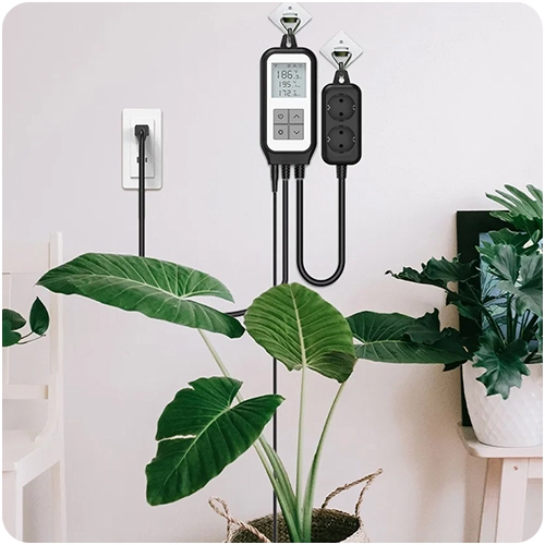 Die duale DC-Smart-Steckdose mit Thermostat und Tuya-App ist ein fortschrittliches Gerät, das die Funktionen einer herkömmlichen Steckdose mit intelligenten Steuerungs- und Temperaturüberwachungsfunktionen kombiniert. Dies ermöglicht es, die Steuerung der Steckdose auf der Grundlage der Umgebungstemperatur zu planen, die mit einem kabelgebundenen Fühler gemessen wird. Zum Beispiel kann eine Steckdose für den Anschluss einer Wärmequelle und die andere für ein Kühlgerät verwendet werden, so dass wir die Temperatur über den gesamten Bereich steuern können.