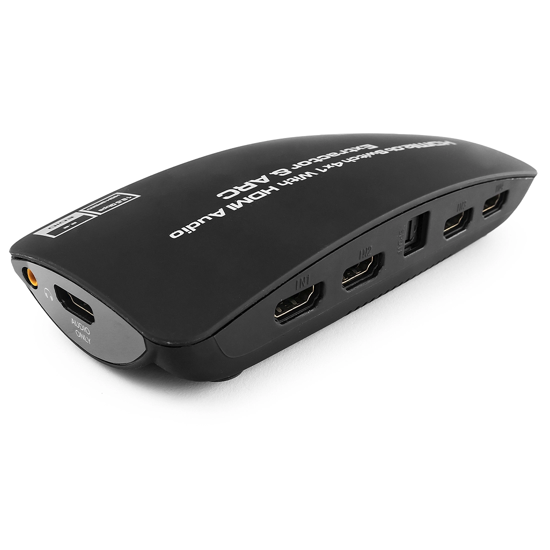 Dzięki funkcji extractora HDMI, urządzenie pozwala wyodrębnić dźwięk z sygnału HDMI na audio HDMI 7.1 Atmos, dźwięk stereo 3.5mm oraz dźwięk optyczny Toslink SPDIF. Dodatkowo extraktor audio obsługuje HDMI ARC (audio return channel)