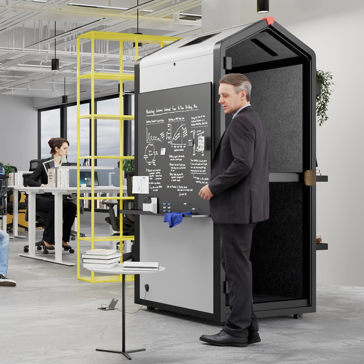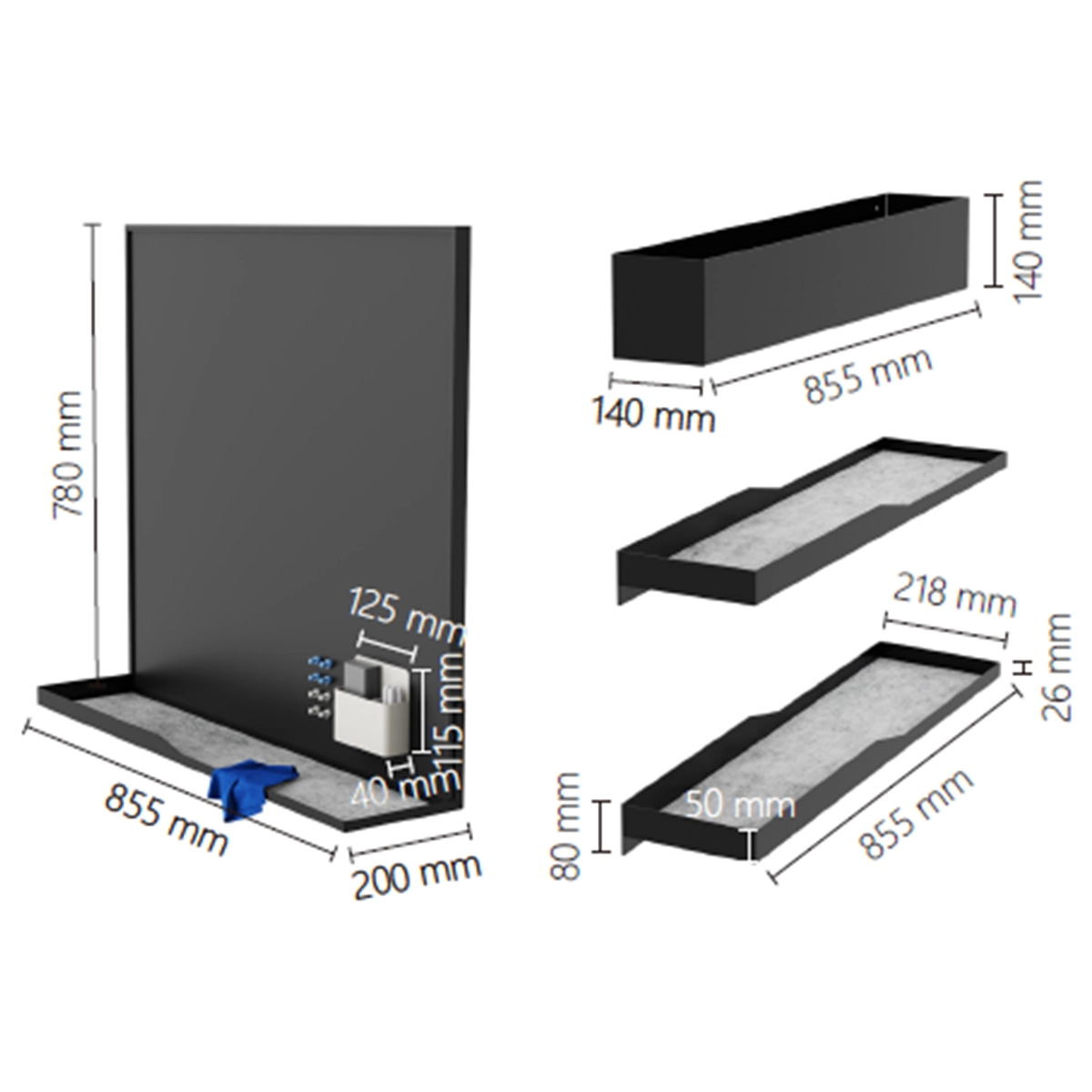 Zorganizuj swoją kabinę akustyczną z kompletnym zestawem akcesoriów Spacetronik. Zawiera dużą tablicę suchościeralną, dwie półki o udźwigu 5 kg, korytko i organizer na akcesoria oraz mazak i gąbkę. Kompatybilny z kabinami Spacetronik o szerokości 860-900 mm. Zwiększ funkcjonalność swojej budki akustycznej z eleganckimi meblami Spacetronik.