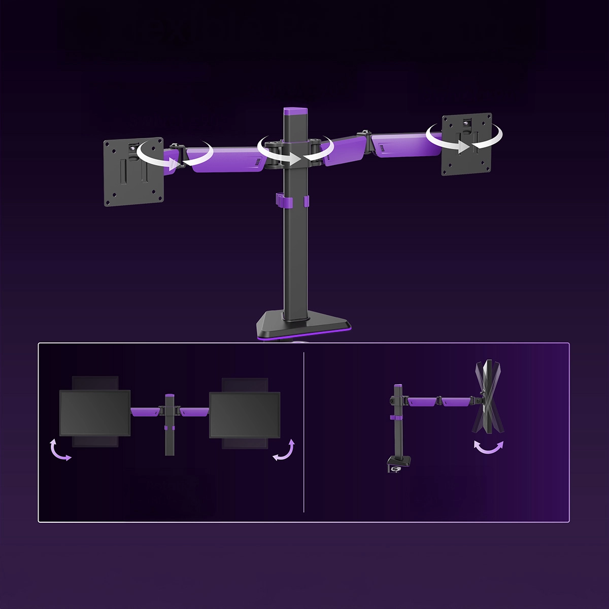Chcesz rozwinąć swoje stanowisko gamingowe o dodatkowe monitory, ale nie masz miejsca na biurku? Spacetronik SPAA120 jest, więc rozwiązaniem specjalnie dla Ciebie. Jego ametystowe elementy sprawiają, że idealnie będzie współgrał z kolorowymi światłami wydobywającymi się z Twojego komputera, monitora czy też klawiatury. Możesz z łatwością powiesić na nim monitory aż do 12 kg każdy. Z łatwością możesz zaoszczędzić sporo wolnej przestrzeni na swoim biurku. Tym samym pracować znacznie wygodniej i wydajniej.