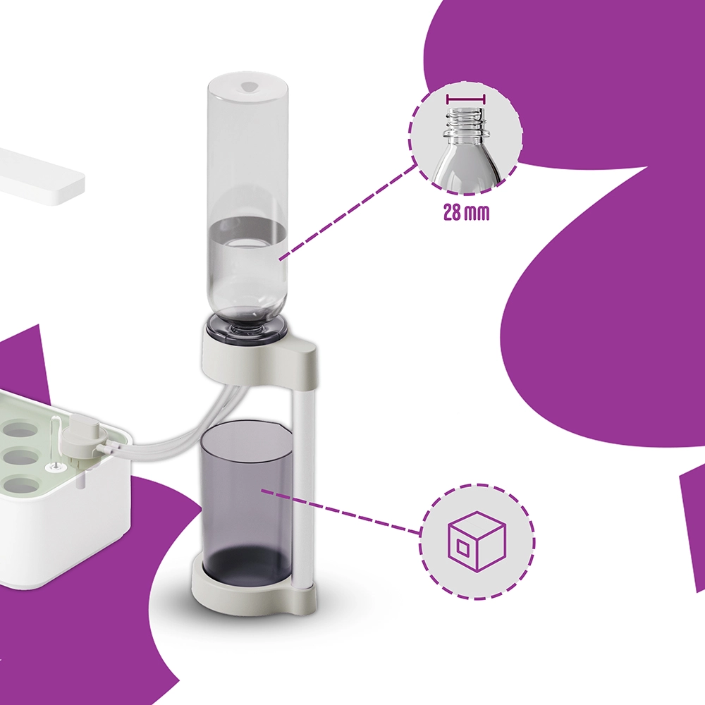 - Uniwersalny zbiornik - wykorzystuje zwykłe butelki (28 mm), np. po Coca-Coli.
