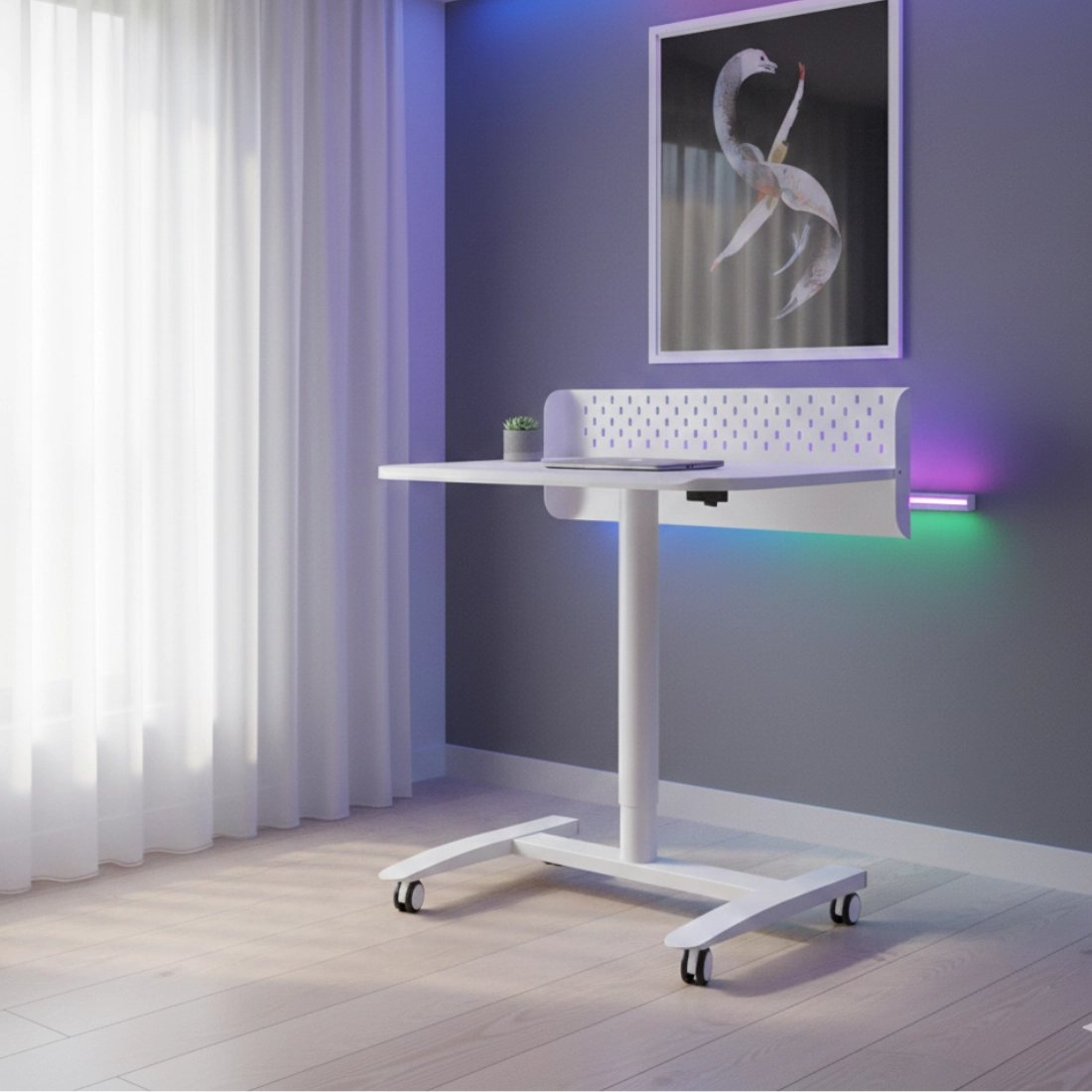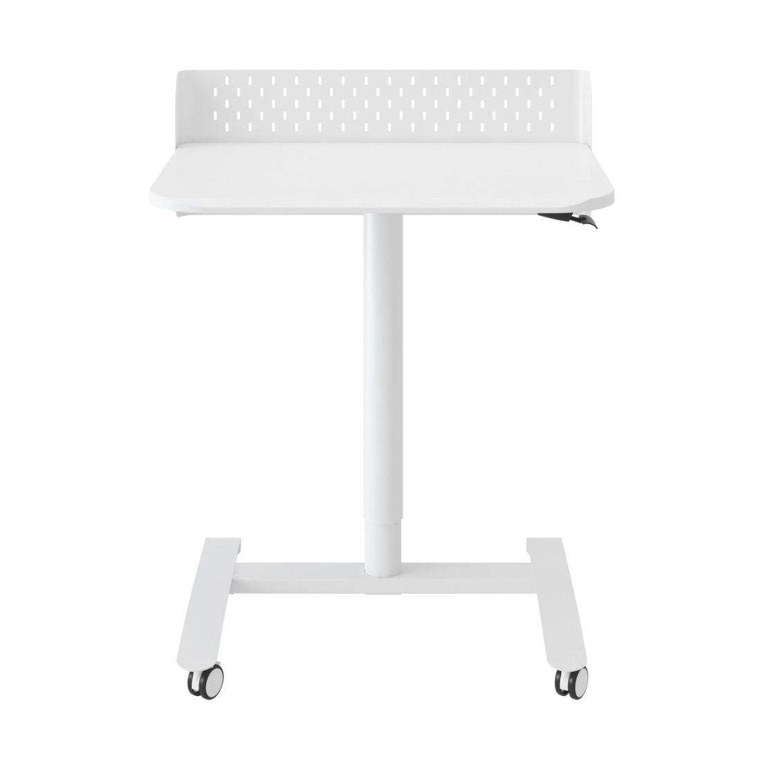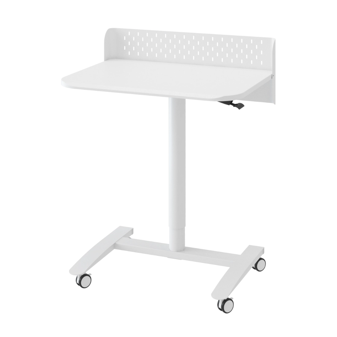 To stanowisko robocze w białym kolorze ułatwia ustawienie ergonomicznej wysokości do pracy przy komputerze i codziennych zadań. Regulacja gazowa w zakresie 66,5–105,1 cm pozwala dopasować pozycję dokładnie do potrzeb użytkownika, a dźwignia sterująca sprawia, że zmiana ustawienia jest szybka i intuicyjna.