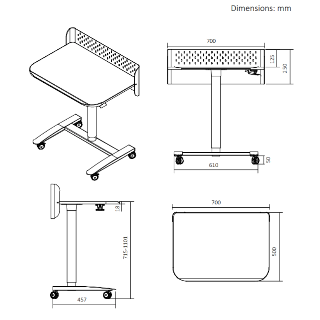 Blat 70 × 50 cm zapewnia praktyczną przestrzeń roboczą, a jednocześnie ułatwia ustawienie stanowiska w pokoju lub biurze, gdzie liczy się każdy centymetr. To wygodne rozwiązanie do pracy z laptopem, nauki i organizacji codziennych zadań.