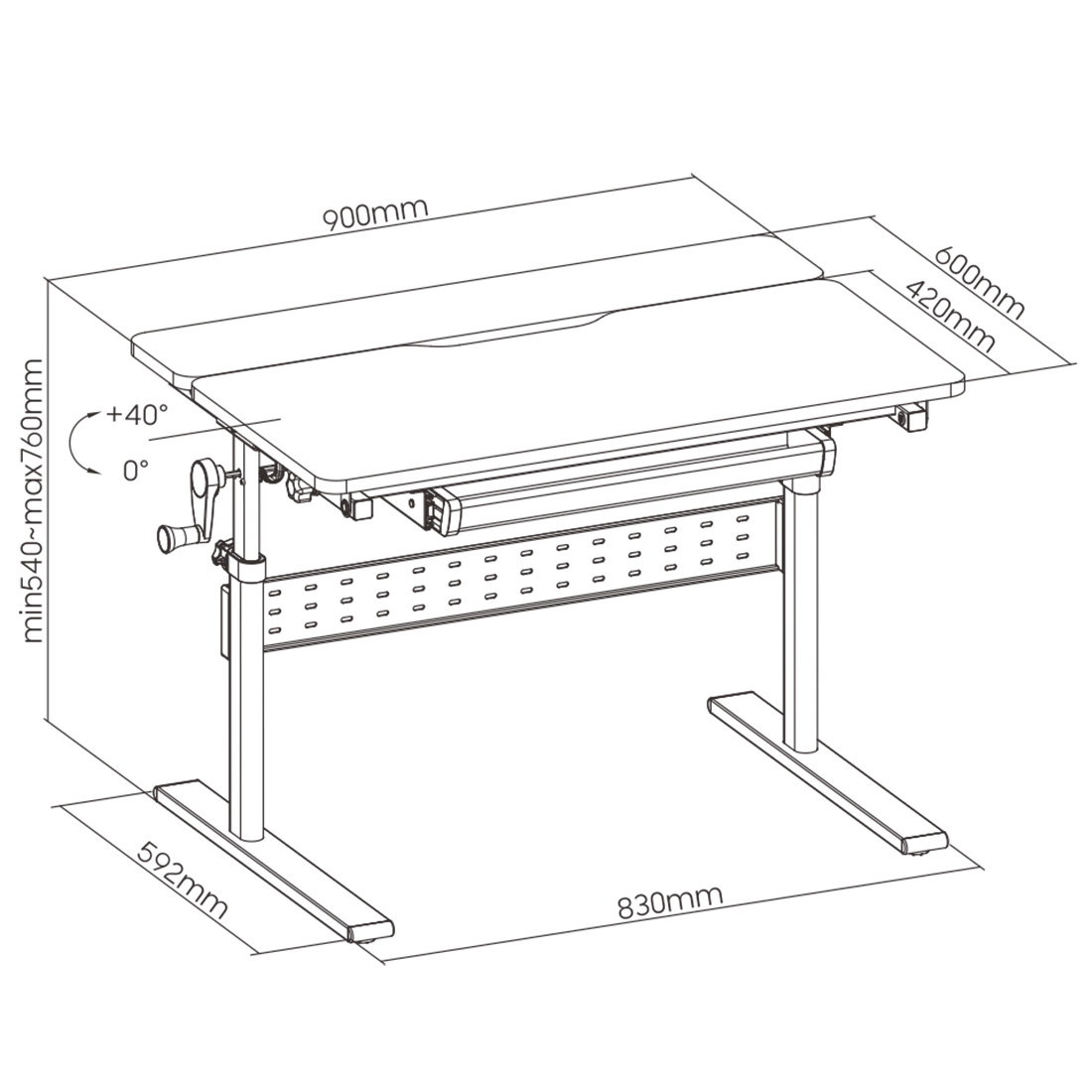 - Pochylany blat - Ustaw inny kąt do czytania, a inny do odrabiania lekcji w zakresie 0-40°.