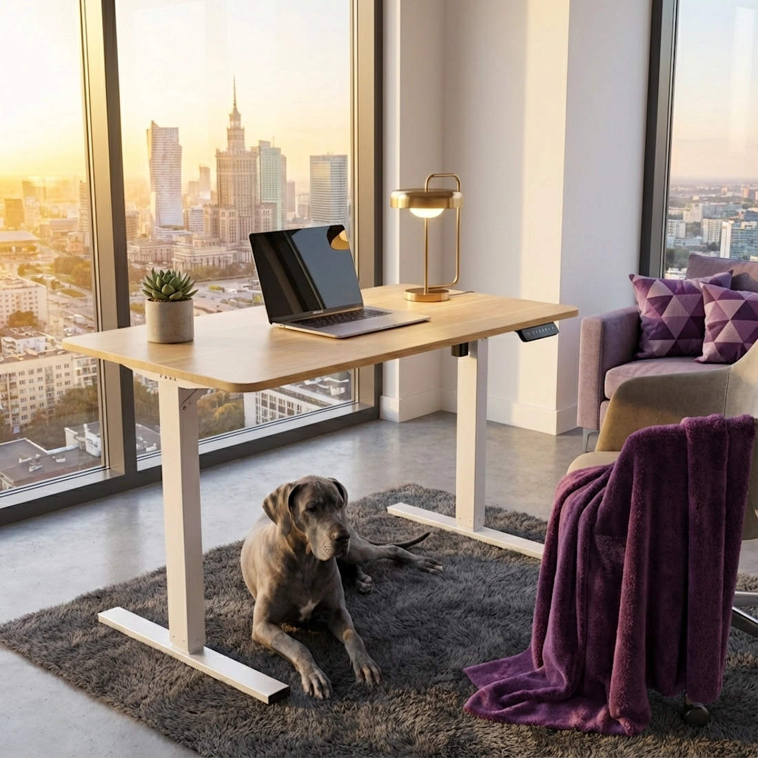 Dzięki zakresowi regulacji 75–110 cm możesz zacząć dzień od pracy na stojąco, a później jednym kliknięciem obniżyć blat do pozycji siedzącej. Panel z pamięcią 4 pozycji zapamięta Twoje ulubione ustawienia – na przykład dla pracy przy komputerze, wideokonferencji czy innego użytkownika biurka. To wygodne rozwiązanie, które ułatwia dbanie o ergonomię na co dzień.