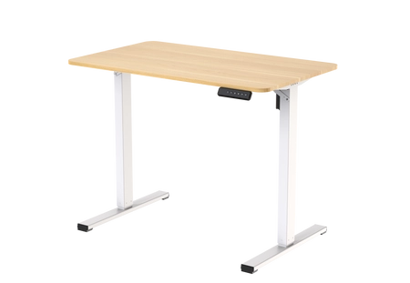 Biurko elektryczne SPEO125WO 120x60 cm – drewniany blat i biały stelaż w stylu skandynawskim