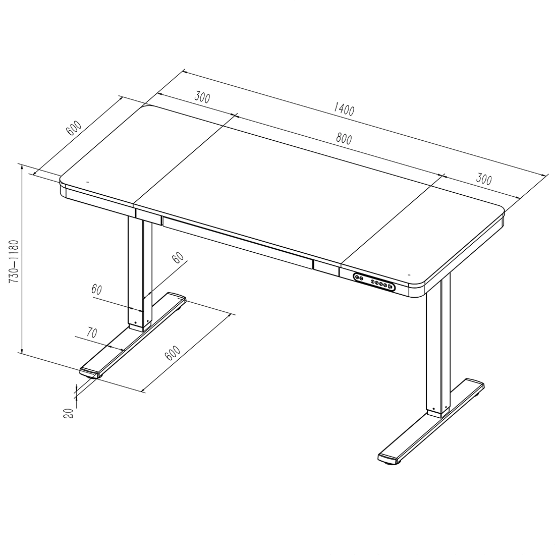 Biurko oferuje płynną elektryczną regulację wysokości w zakresie od 73 cm do 122 cm. Dodatkowo, kontroler posiada funkcję pamięci 4 różnych pozycji, co pozwala na szybkie przełączanie między zapisanymi ustawieniami.
