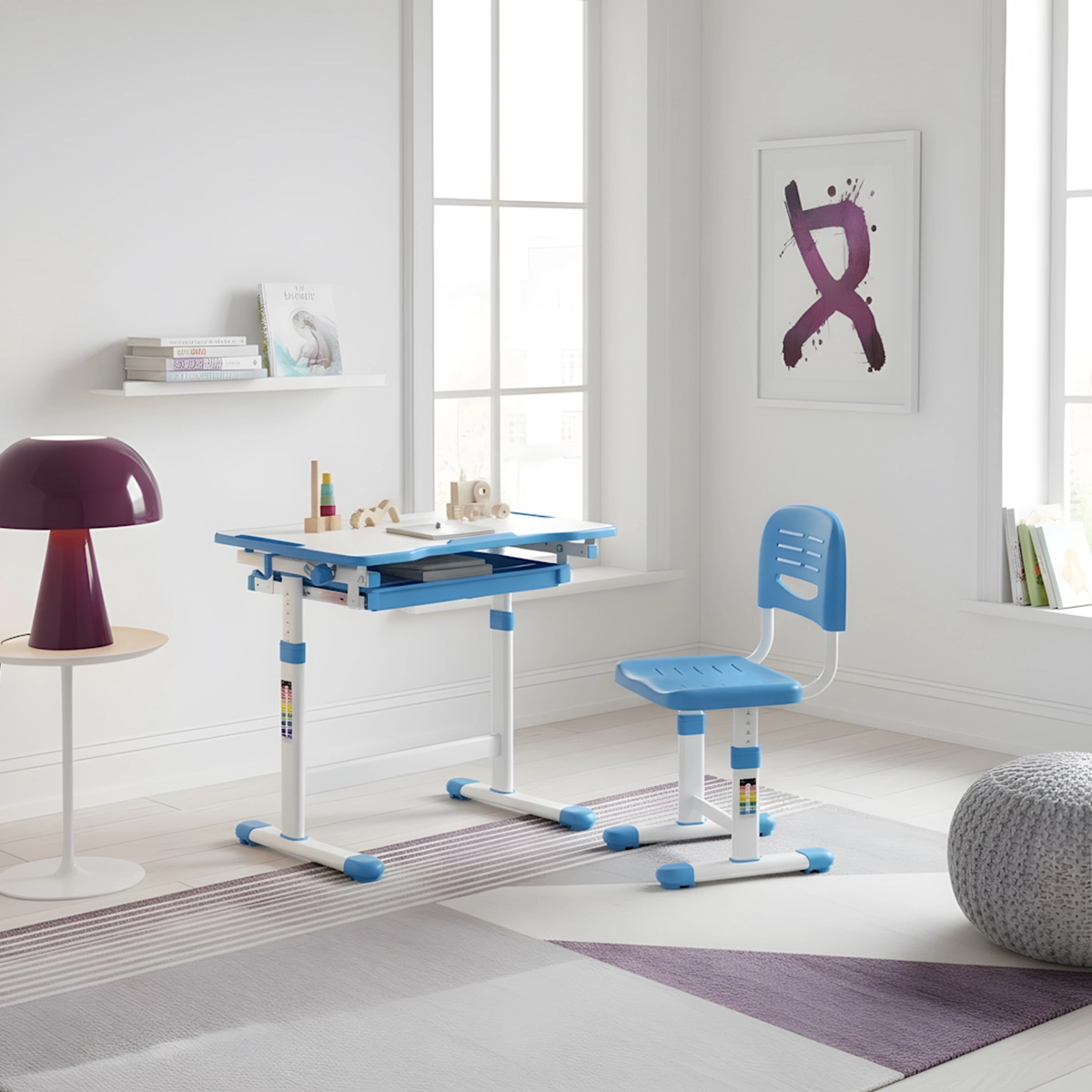 Rośnie razem z dzieckiem - Płynna regulacja wysokości biurka i krzesła gwarantuje idealne dopasowanie do wzrostu na każdym etapie rozwoju.