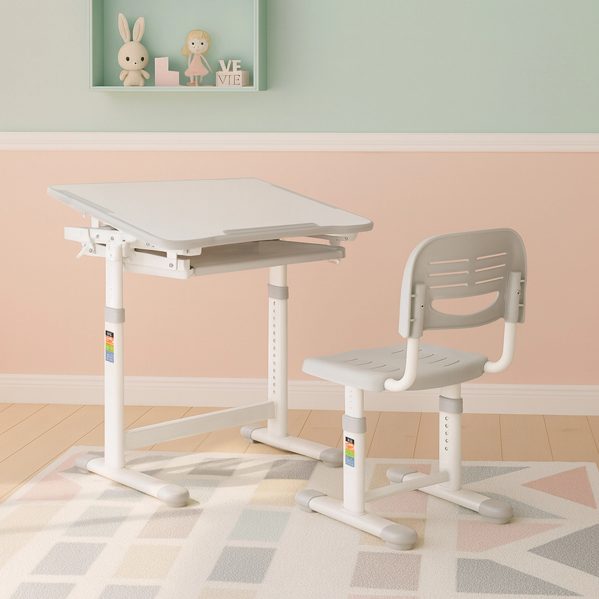 Rośnie razem z dzieckiem - Płynna regulacja wysokości biurka i krzesła gwarantuje idealne dopasowanie do wzrostu na każdym etapie rozwoju.