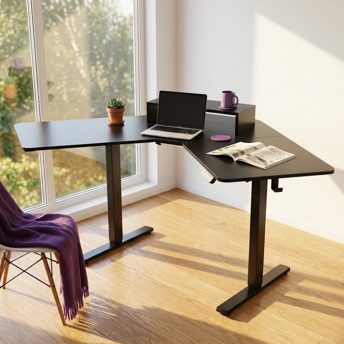 Biurko narożne regulowane SPEL112BB zostało zaprojektowane z myślą o maksymalnym wykorzystaniu przestrzeni i wygodzie użytkownika. Elektryczny mechanizm podnoszenia, blat dopasowany do narożnika oraz inteligentny panel sterowania z wyświetlaczem LED i pamięcią wysokości pomagają stworzyć stanowisko, które wspiera zdrową postawę i porządek na biurku na co dzień.