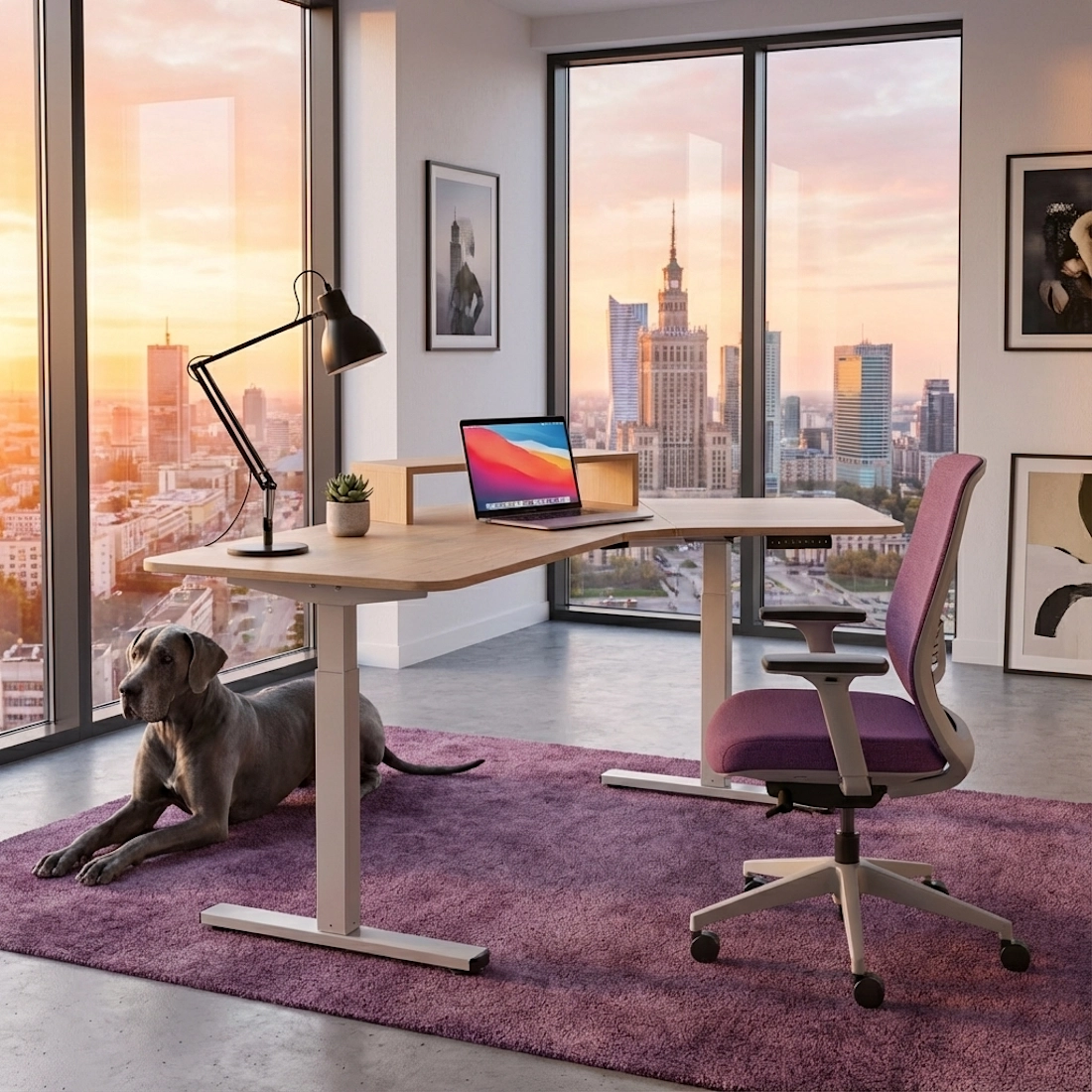 Biurko narożne regulowane SPEL112WL zostało zaprojektowane z myślą o maksymalnym wykorzystaniu przestrzeni i wygodzie użytkownika. Elektryczny mechanizm podnoszenia, blat dopasowany do narożnika oraz inteligentny panel sterowania z wyświetlaczem LED i pamięcią wysokości pomagają stworzyć stanowisko, które wspiera zdrową postawę i porządek na biurku na co dzień. Jasno drewniany blat w połączeniu z białą, stalową konstrukcją nadaje stanowisku pracy lekkiego, nowoczesnego charakteru.