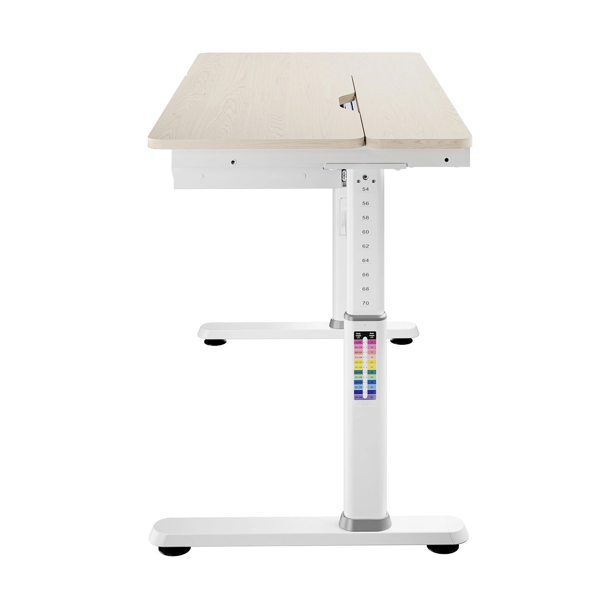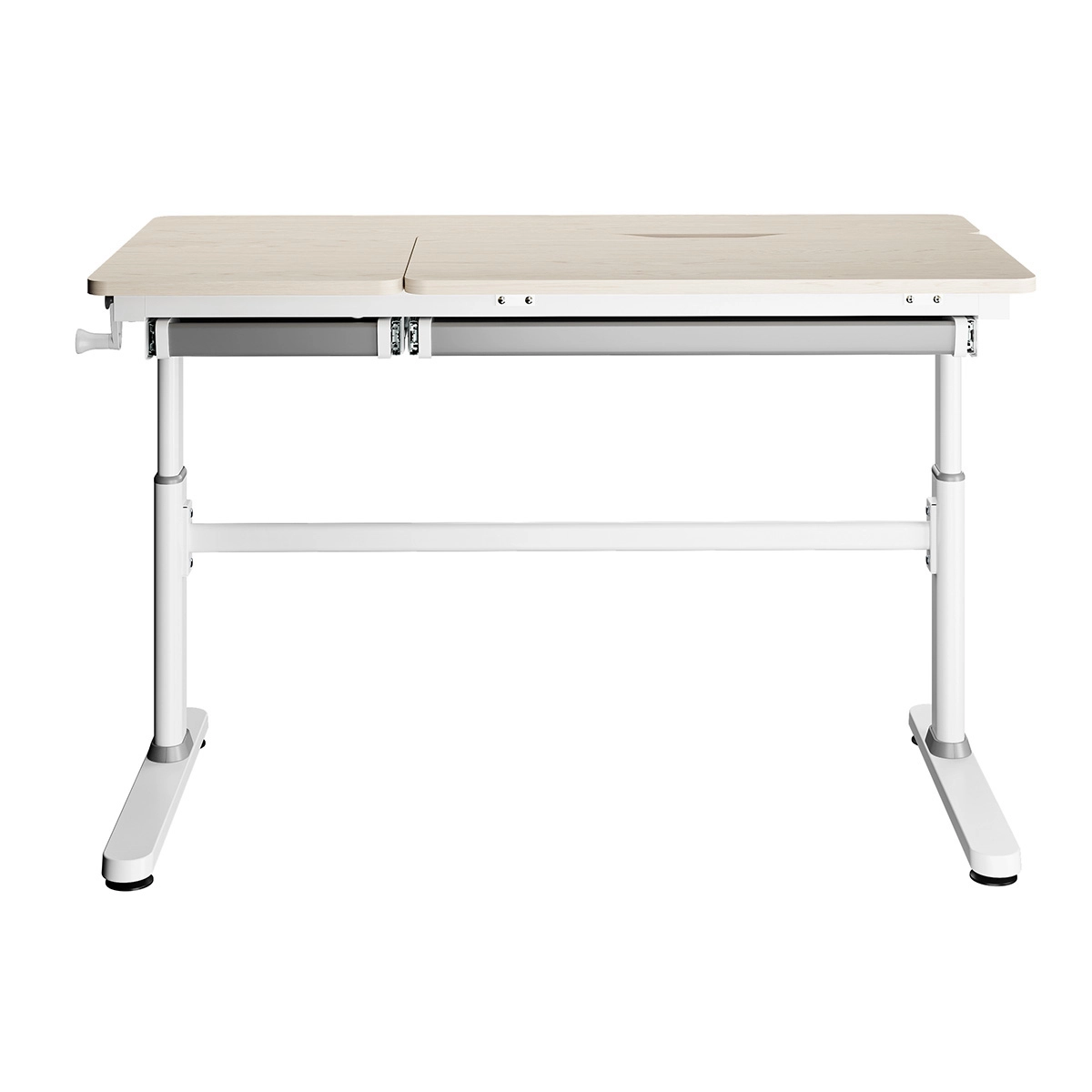 • Regulowane biurko dziecięce, które rośnie razem z Twoim dzieckiem. Dostosuj odpowiednią wysokość blatu do wzrostu Twojej pociechy w zakresie od 54 cm do 76 cm. Blat 120 x 60 cm. Kolor biały, klon. Hak na plecak. Odchylany blat. Dwie szuflady.