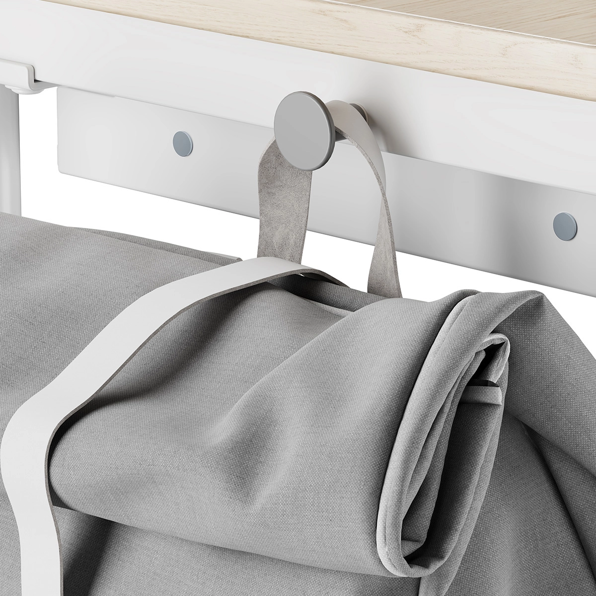 Po jednej stronie biurka znajduje się wygodny haczyk na torbę, który może utrzymać plecak o dowolnej wadze. Zapewnia on dziecku nieograniczony i łatwy dostęp do jego książek. Będzie mu zdecydowanie łatwiej utrzymywać zorganizowaną przestrzeń mając wszystko, co potrzebne wokół siebie. Dzięki temu zaraz po odrobieniu pracy domowej będzie mógł, chociażby spakować się na jutro do szkoły.