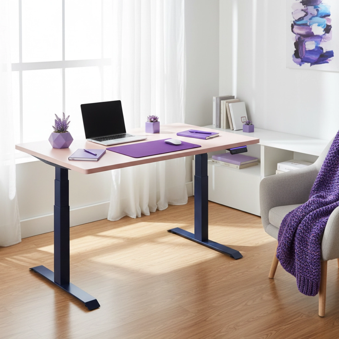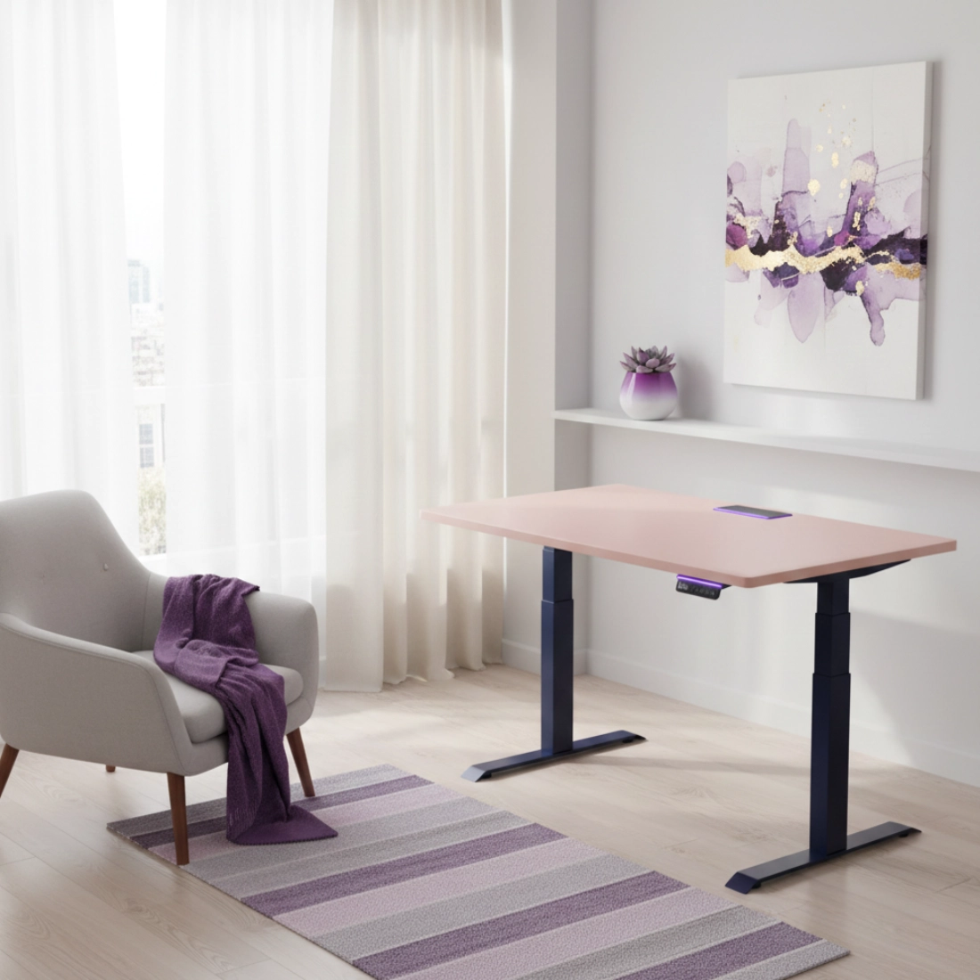Opinie o Biurko regulowane Vegard elektryczne dwusilnikowe MDF granatowo-różowe