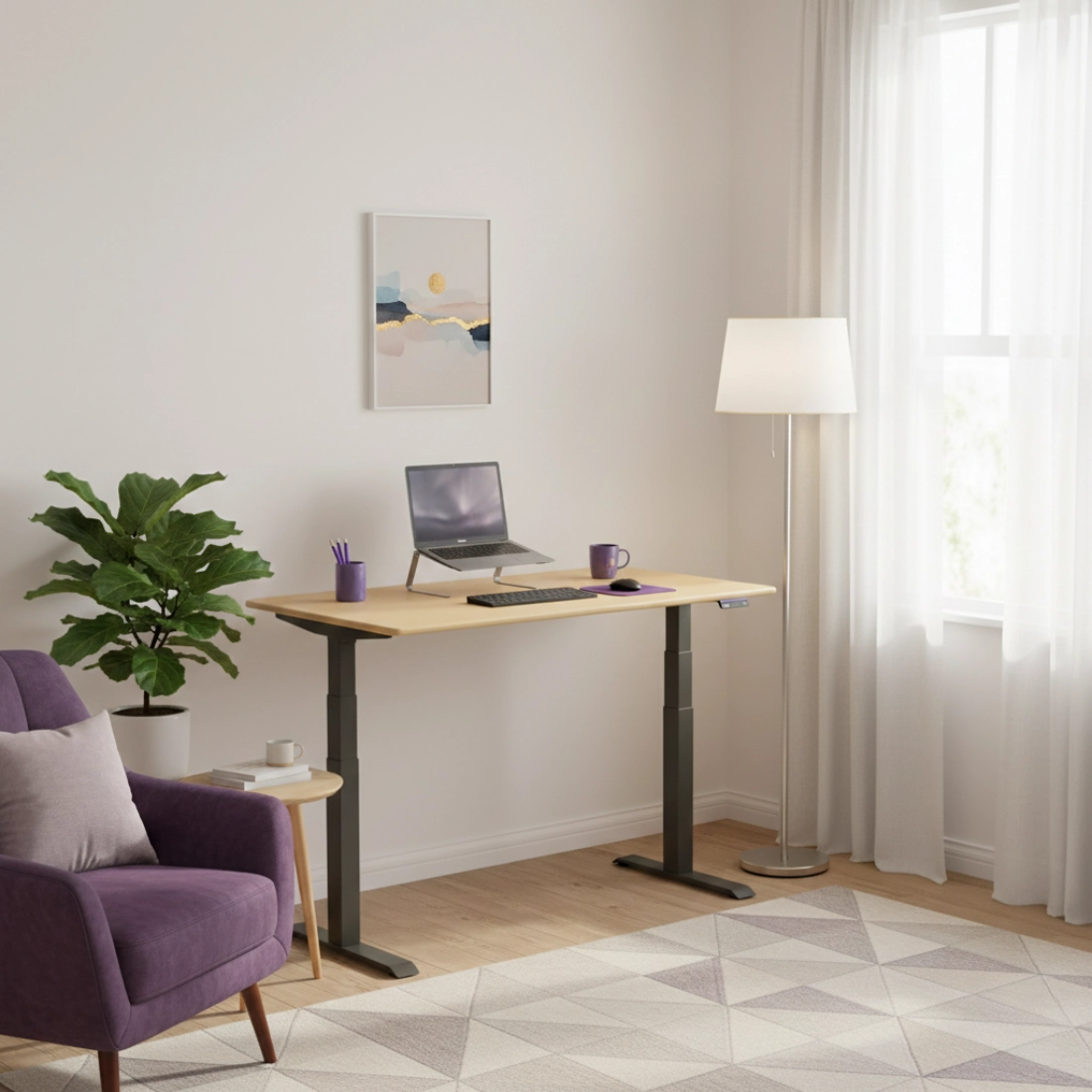 Połączenie elektrycznego stelaża o wysokiej stabilności z blatem MDF premium tworzy praktyczne biurko do intensywnej pracy. Wygodna regulacja wysokości, funkcje kontrolera i trwała powierzchnia blatu sprawiają, że to rozwiązanie dobrze sprawdza się zarówno w domu, jak i w biurze. To komplet z serii Vegard, stworzony z myślą o komforcie i długiej żywotności.