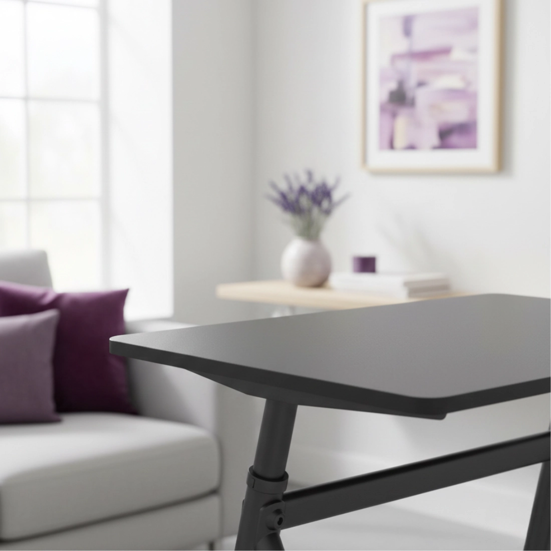 Blat jest praktyczny na co dzień: zmieści laptop, klawiaturę, mysz i najważniejsze akcesoria, a jednocześnie nie zajmuje dużo miejsca. Sprawdzi się w mniejszych pomieszczeniach lub jako dodatkowe stanowisko do pracy na stojąco.