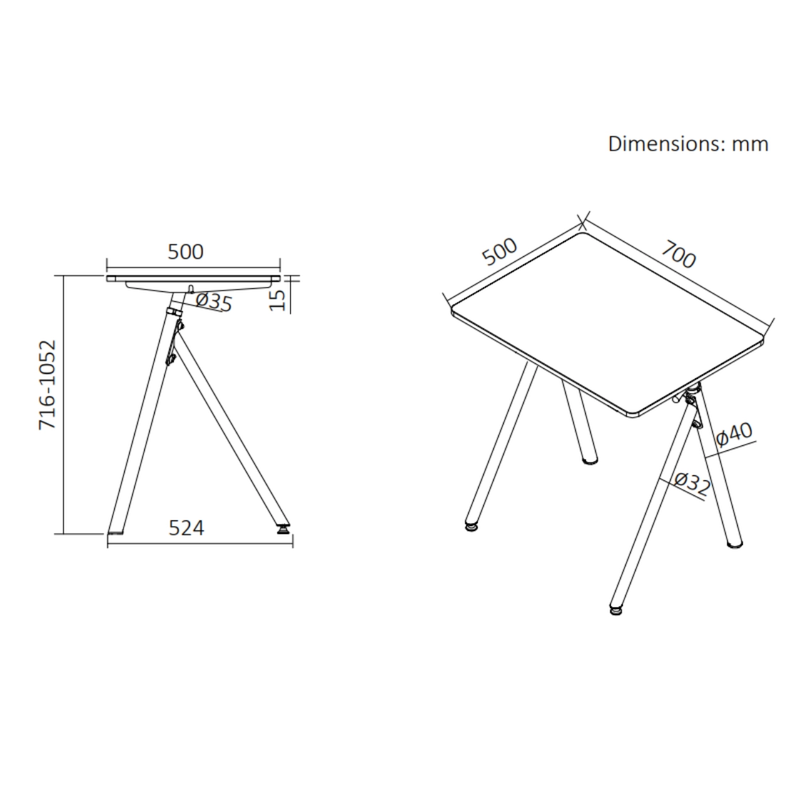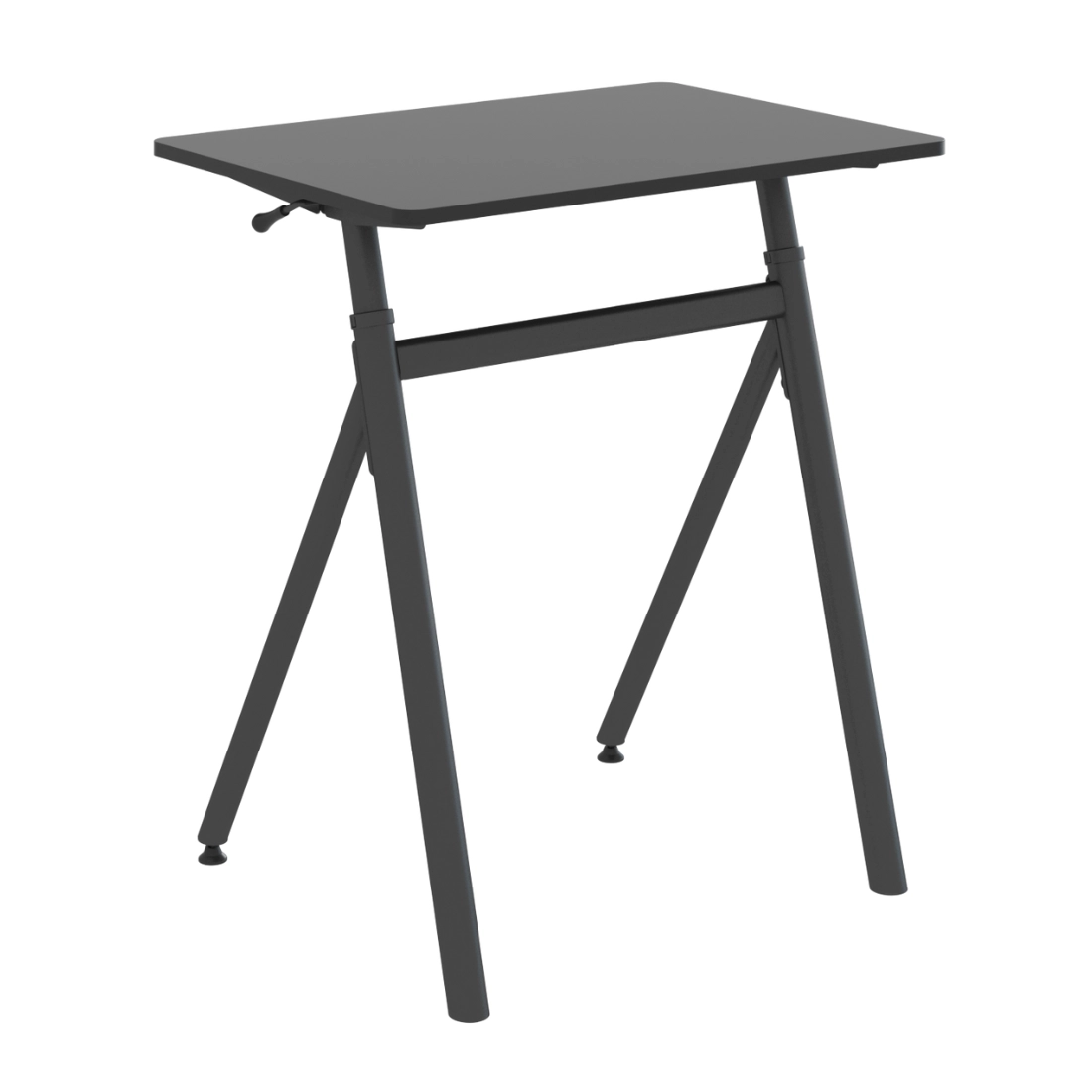 • Biurko stojące z płynną regulacją gazową w zakresie 71,6–105,2 cm obsługiwaną dźwignią pod blatem. Kompaktowy blat 70 × 50 cm oraz stabilna konstrukcja ze stali i PP z blatem z płyty wiórowej sprawdzą się do pracy i nauki.