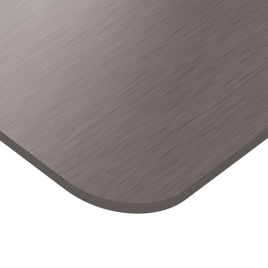 Solidny uniwersalny blat 120x60 cm do biurka lub stołu wykonany z wysokiej jakości płyty obustronnie laminowanej o grubości 18 mm. Posiada zaokrąglone narożniki i jest zabezpieczony obrzeżami z ABS. W połączeniu z elektrycznym stelażem biurkowym stanowi ergonomiczne i nowoczesne wyposażenie miejsca pracy, zarówno w domu, jak i przestrzeni biurowej. Dekor Tytan Srebrzysty jest wyjątkowy w naszej ofercie. Zdjęcia nie oddają pełni jego charakteru. Wzór jest dosyć gładki i szary, o delikatnym odcieniu tytanu. Powierzchnia jest pokryta srebrzystą farbą, która odbija i rozprasza światło, co przypomina właściwości metalu.