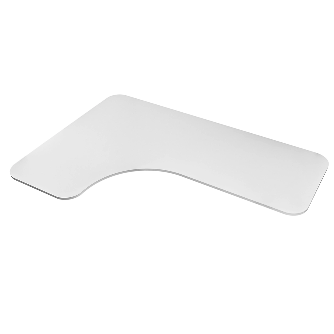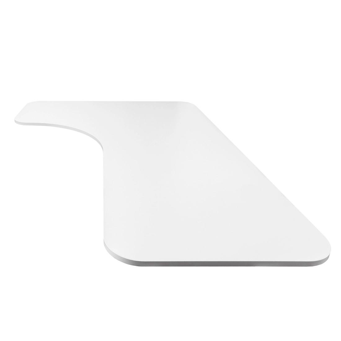 Solidny uniwersalny blat  do biurka lub stołu wykonany z wysokiej jakości płyty obustronnie laminowanej o grubości 18 mm. Posiada zaokrąglone narożniki i jest zabezpieczony obrzeżami z ABS. W połączeniu z elektrycznym stelażem biurkowym stanowi ergonomiczne i nowoczesne wyposażenie miejsca pracy, zarówno w domu, jak i przestrzeni biurowej. Kształt blatu L, przeznaczony do stelaży narożnych.