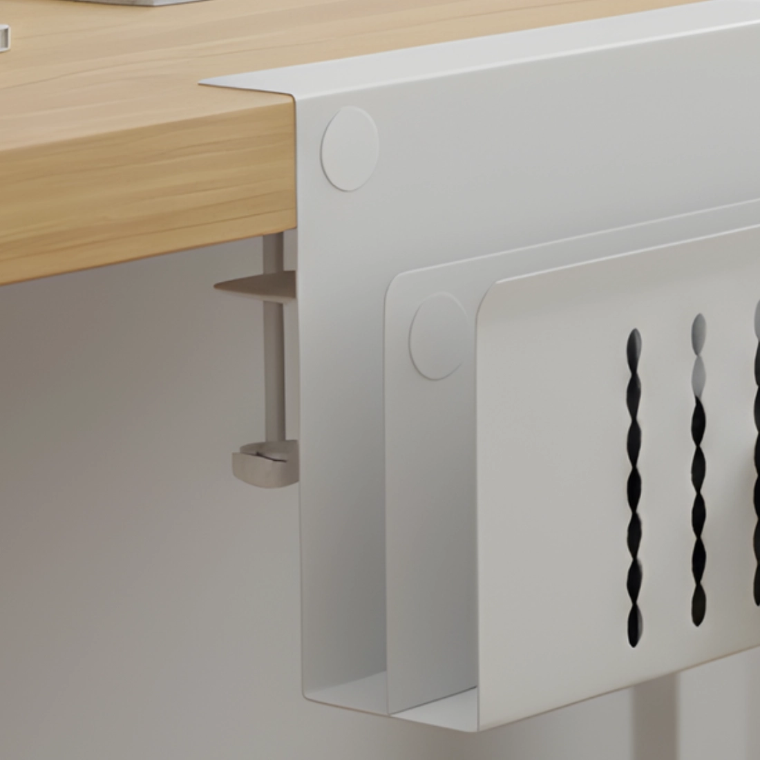 SPB164W to boczny schowek do biurka montowany na zacisk (clamp), który zwiększa przestrzeń roboczą bez wiercenia i bez stałego montażu. Metalowa konstrukcja ze stali z elementami ABS jest stabilna, a białe wykończenie pasuje do jasnych, nowoczesnych stanowisk. Organizer zapewnia dodatkowe miejsce na laptopa lub książki, pomagając utrzymać porządek na blacie i mieć najpotrzebniejsze rzeczy zawsze pod ręką.