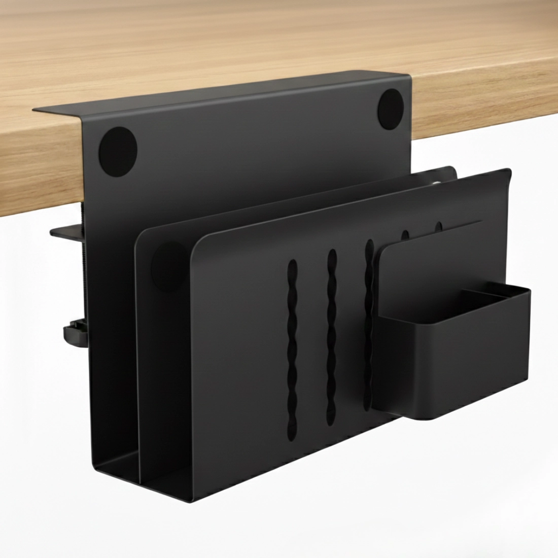 • Boczny organizer do biurka SPB164B montowany na zacisk to prosty sposób na więcej miejsca przy pracy. Stabilna konstrukcja ze stali i ABS pozwala wygodnie przechowywać laptopa lub książki obok blatu, bez wiercenia i stałego montażu.
