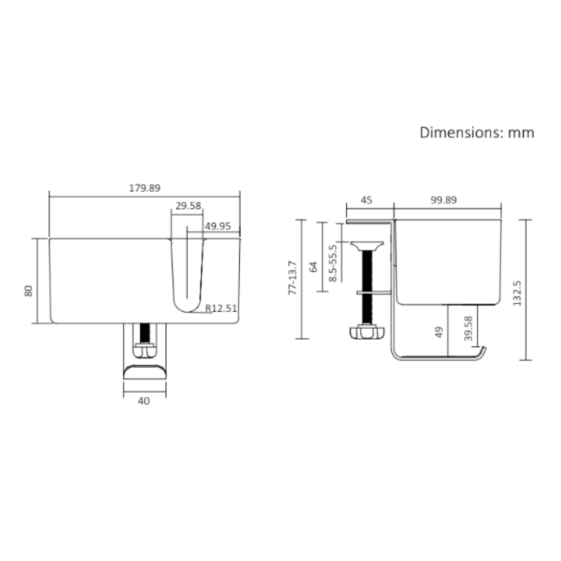 Boczny organizer do biurka na zacisk – uchwyt na kubek i haczyki na słuchawki, biały (SPB028W)