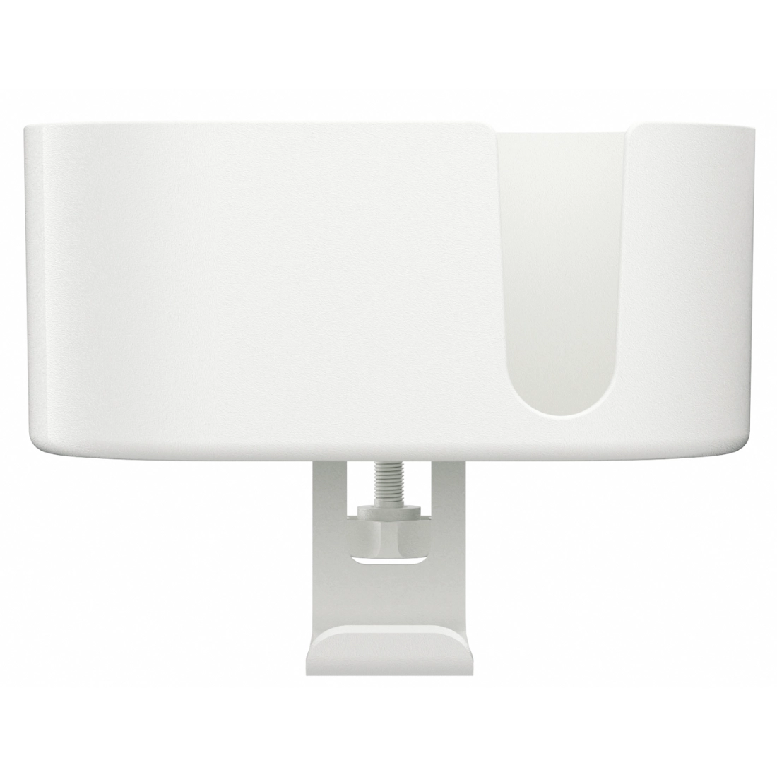 Gdy na biurku robi się tłoczno, łatwo o przypadkowe potrącenie kubka i rozlanie napoju. SPB028W przenosi kubek na bok biurka, zwalniając miejsce na blacie i pomagając utrzymać porządek. Dodatkowe haczyki pozwalają odwiesić słuchawki, aby nie plątały się w kablach i nie leżały na biurku. Montaż na zacisk ułatwia instalację bez wiercenia i umożliwia szybkie przeniesienie organizera na inne stanowisko.