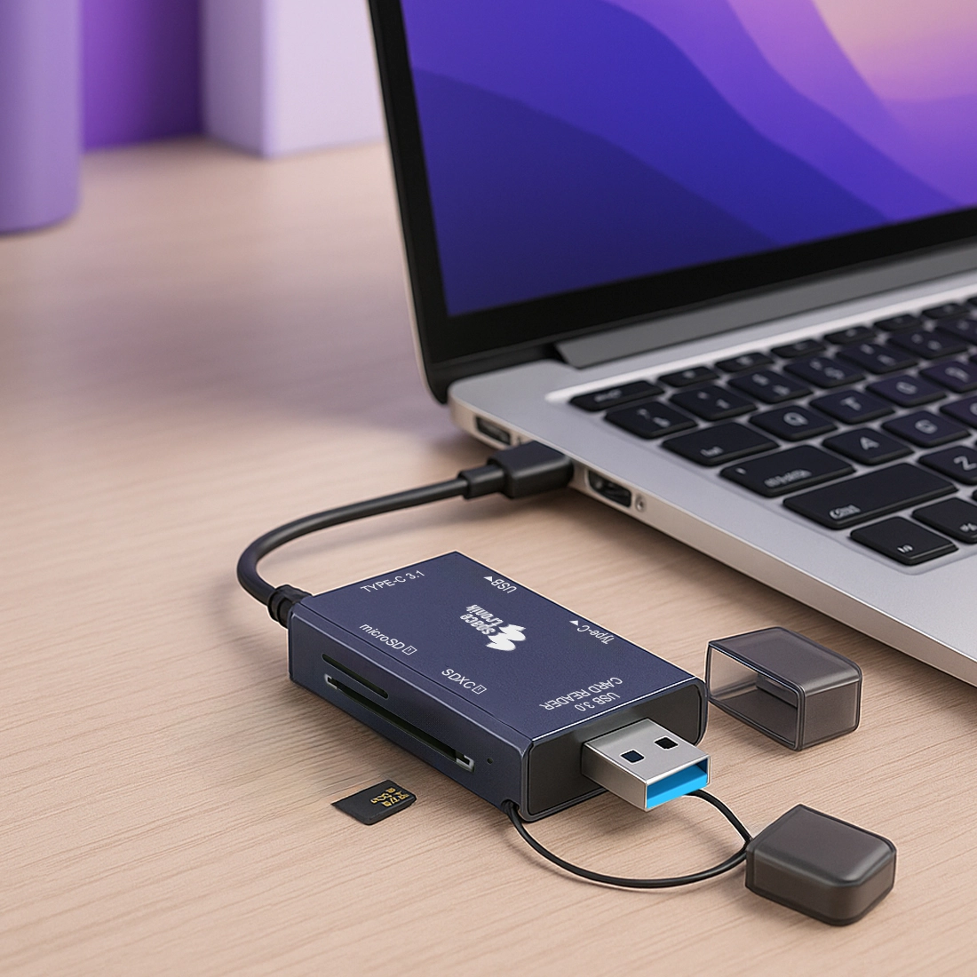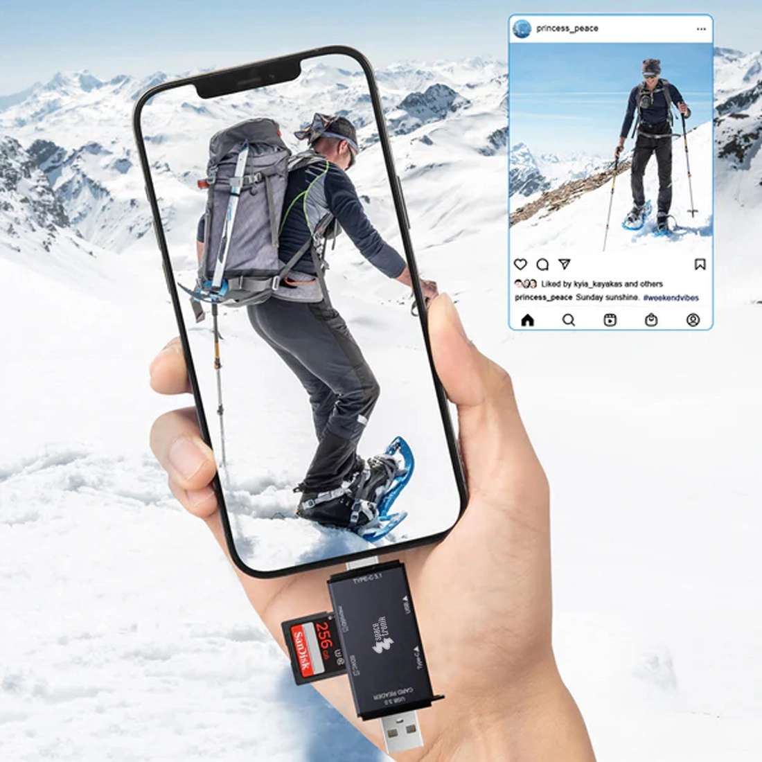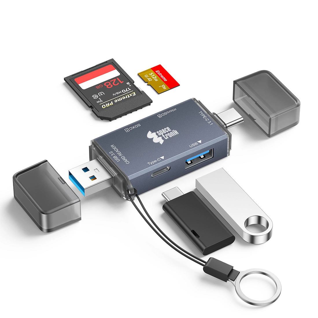 - Uniwersalność 6w1: Jeden kompaktowy czytnik obsługujący USB-C, USB-A, SD i microSD – wszystko, czego potrzebujesz w jednym urządzeniu.
