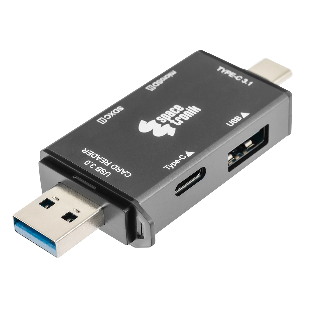 Czytnik kart pamięci USB-C USB 3.0 hub 6w1 SD/MicroSD HUB plug and play Spacetronik SPU-CR07