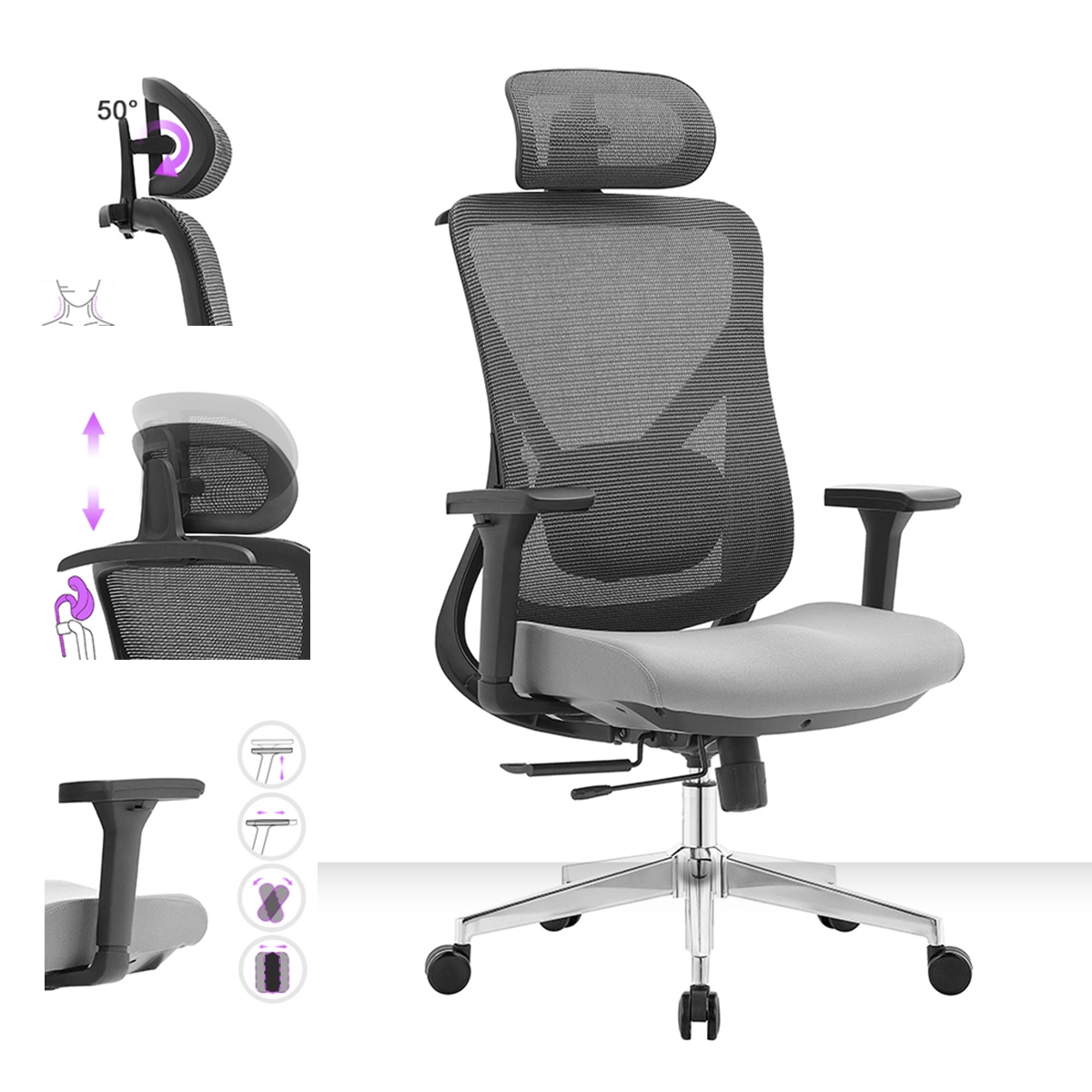 • Materiał: Siatkowe oparcie, siedzisko z tkaniny z gęstą pianką, miękkie podłokietniki pokryte powłoką PU,