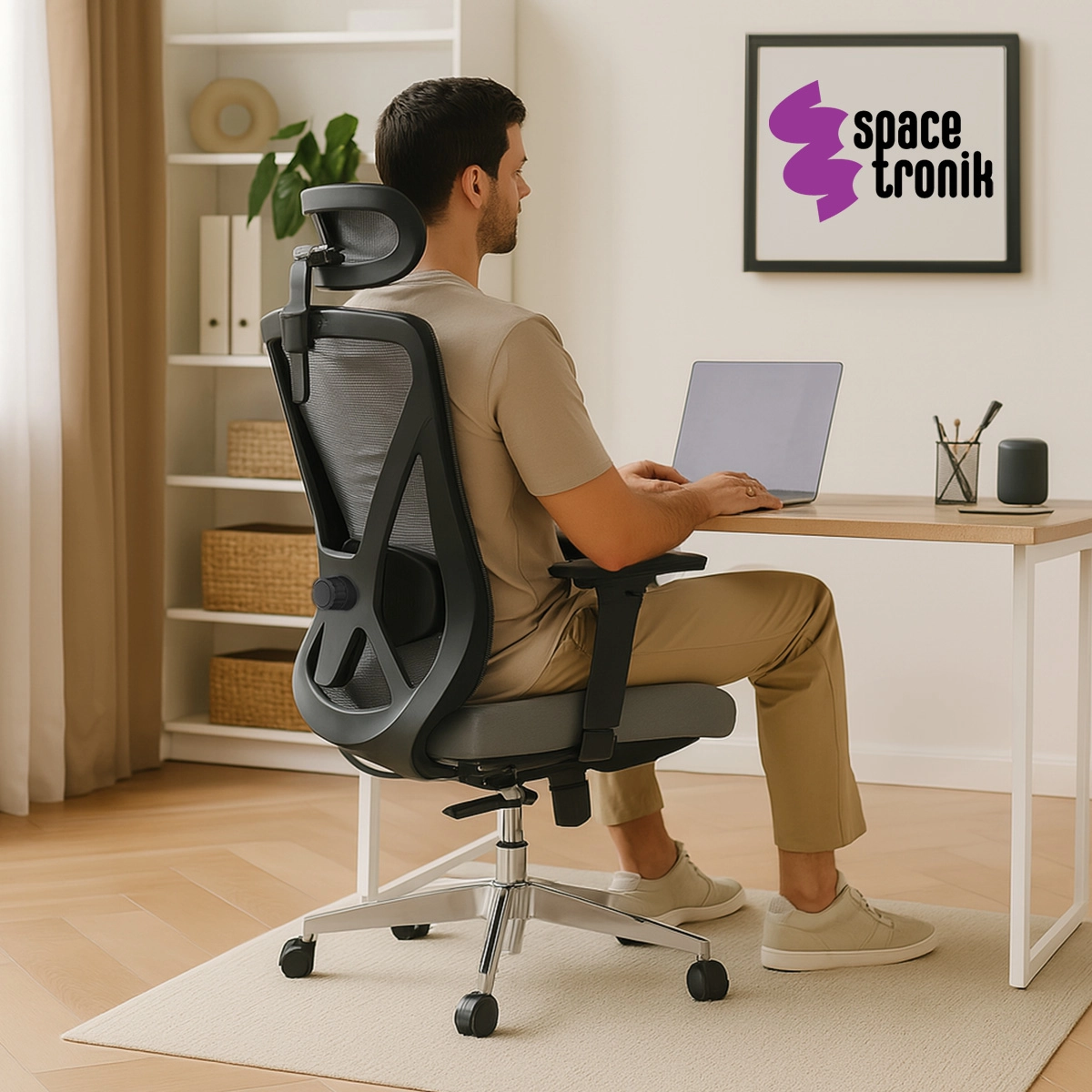 Siedzenie na krześle jest w dzisiejszych czasach czynnością, którą wykonujemy przez bardzo dużą część naszego dnia. Czy to podczas pracy w biurze, na lekcji w szkole czy też w domu relaksując się przed komputerem. Dlatego też warto zadbać o to, by godziny spędzane w fotelu nie wpływały negatywnie na nasze samopoczucie i stan zdrowia. W tym celu powinieneś wybrać ergonomiczny fotel, który będzie sprawiał, że Twój kręgosłup będzie w naturalnej, prawidłowej pozycji. Dokładnie takim fotelem jest krzesło ze wsparciem lędźwiowym Spacetronik SPC-ELSA!
