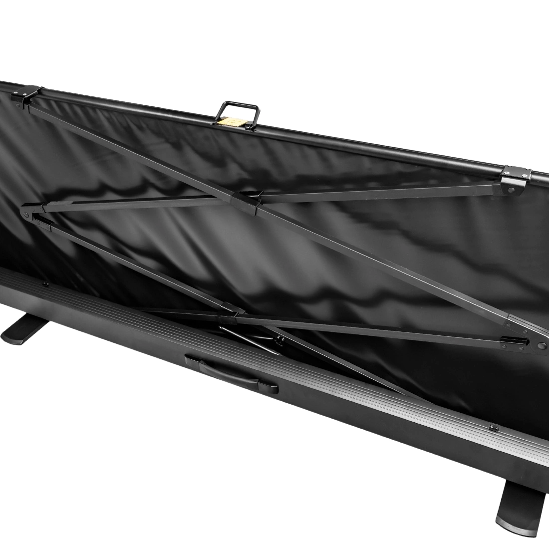 Nasz podłogowy ekran projekcyjny jest niezwykle łatwy do rozstawienia. 10 sekund- tylko tyle zajmuje jego rozłożenie! Dzięki solidnej pokrywie z rączką, można go z łatwością przenosić i ustawiać w dowolnym miejscu. Gazowo nożycowa rama umożliwia szybkie i płynne rozwinięcie ekranu z podłogi, bez potrzeby montażu.