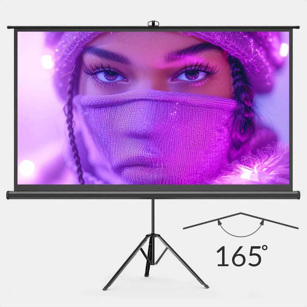 Ekran projekcyjny oferuje szeroki kąt widzenia wynoszący 165 stopni, dzięki czemu nie musisz siedzieć bezpośrednio na wprost ekranu, aby cieszyć się doskonałą jakością obrazu.
