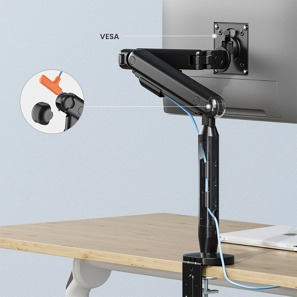 W dzisiejszych czasach praca przy komputerze nie jest niczym nowym. Wielu z nas spędza przed ekranami monitorów wiele godzin w ciągu dnia. Jednak monitor stojący na biurku zajmowałby Ci sporą przestrzeń roboczą. Z rozwiązaniem tego problemu przychodzi Ci uchwyt na monitor Spacetronik SPAI110. Z łatwością zamontuj monitor do biurka, w taki sposób, by nie zajmował Ci cennego miejsca na blacie.