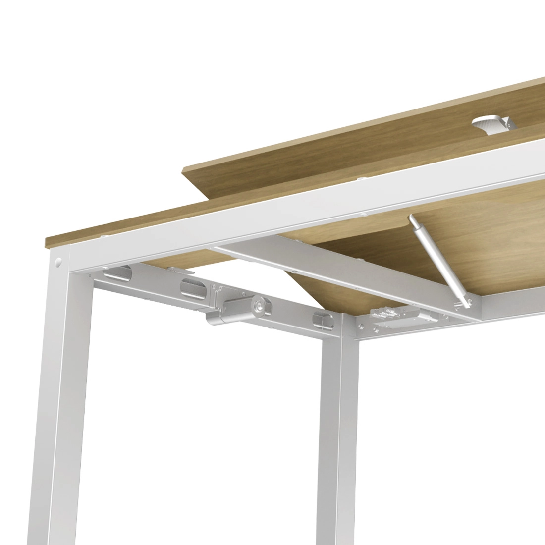 Dzięki zaawansowanemu systemowi regulacji, biurko umożliwia płynną zmianę wysokości w przedziale 730-1200 mm. Mechanizm pozwala na szybką i wygodną adaptację do zmieniających się potrzeb użytkownika. Biurko idealnie nadaje się zarówno do pracy siedzącej, jak i stojącej, co wspiera zdrowy styl życia. Jest to idealne rozwiązanie, chociażby do ergonomicznego biura, w którym na jednym stanowisku pracuje więcej niż jeden pracownik. Dzięki temu każdy z nich będzie mógł dopasować wysokość zgodnie ze swoimi potrzebami.