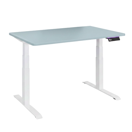 Elektryczne biurko regulowane Vegard – stelaż 2 silniki + blat MDF premium niebieski