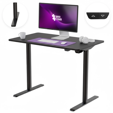 • Biurko z elektryczną regulacją wysokości Spacetronik Moris SPE-O121. Możliwość dostosowania pozycji w zakresie 725 - 1175 mm z prędkością 15 mm/s. Wszystko to przy jednoczesnej pracy poniżej 55 dB. Udźwig 50 kg. Kolor czarny stelaż, czarny blat.